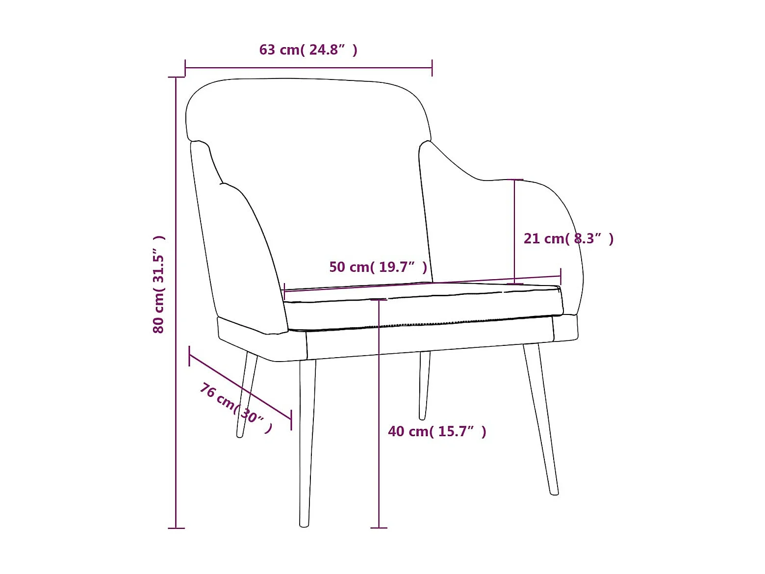 Cadeira c/ apoio de braços 63x76x80 cm veludo cinzento-escuro