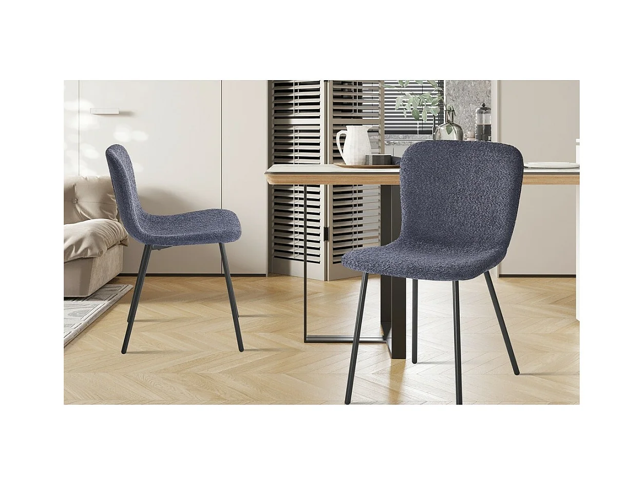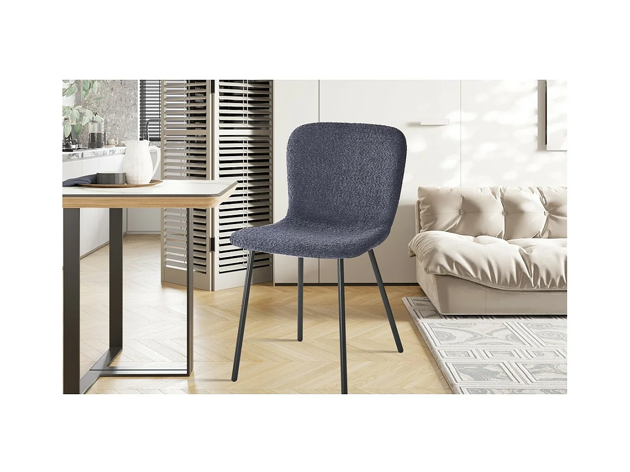 Cadeira com revestimento bouclé para sala de jantar na cor cinza escuro. Coleção ALCAN