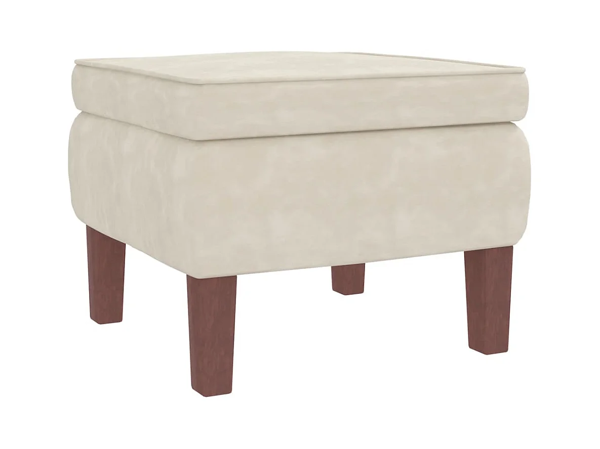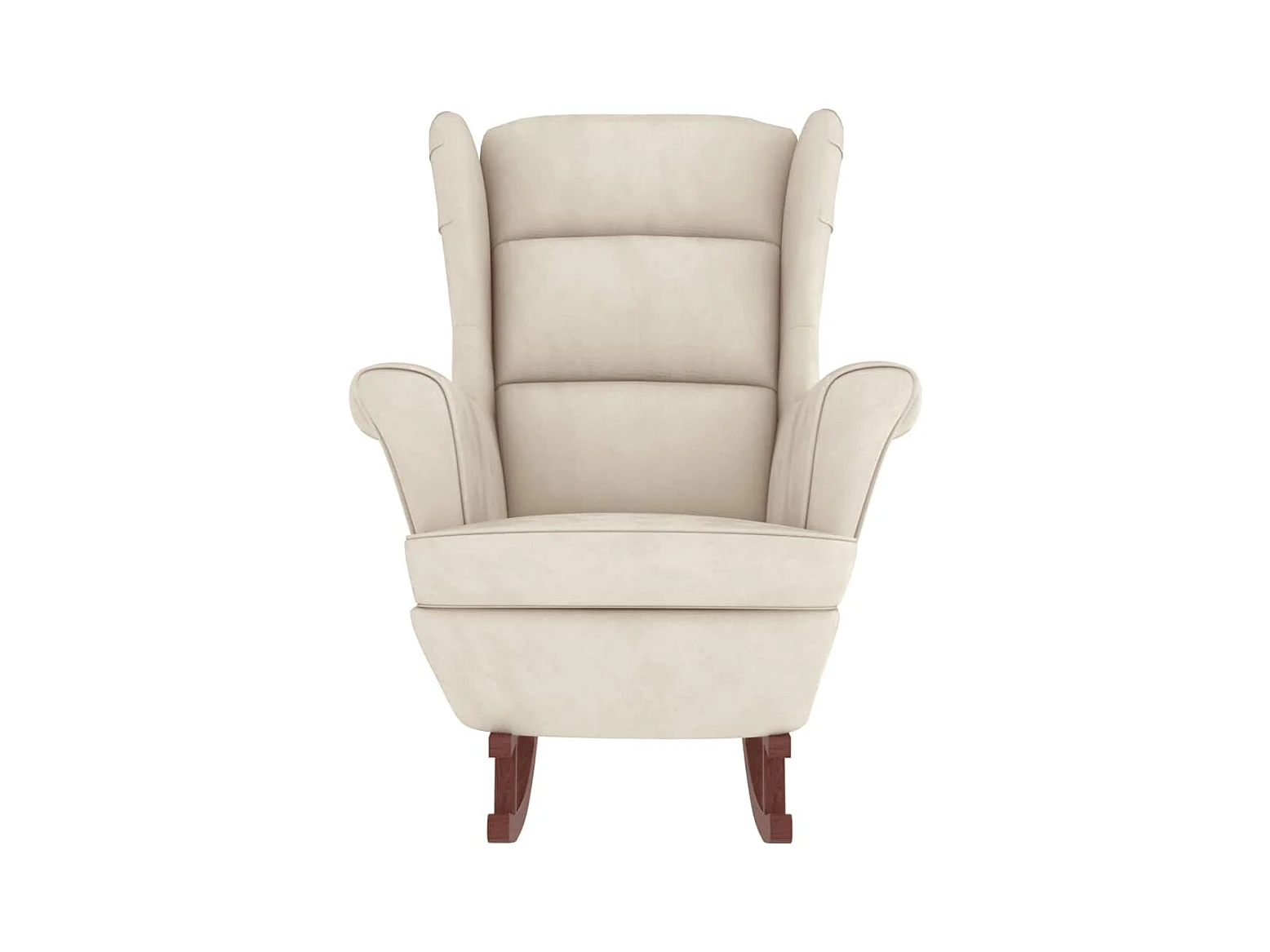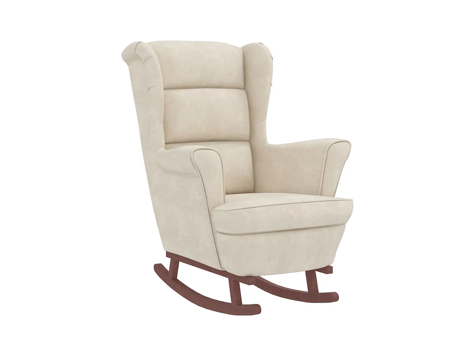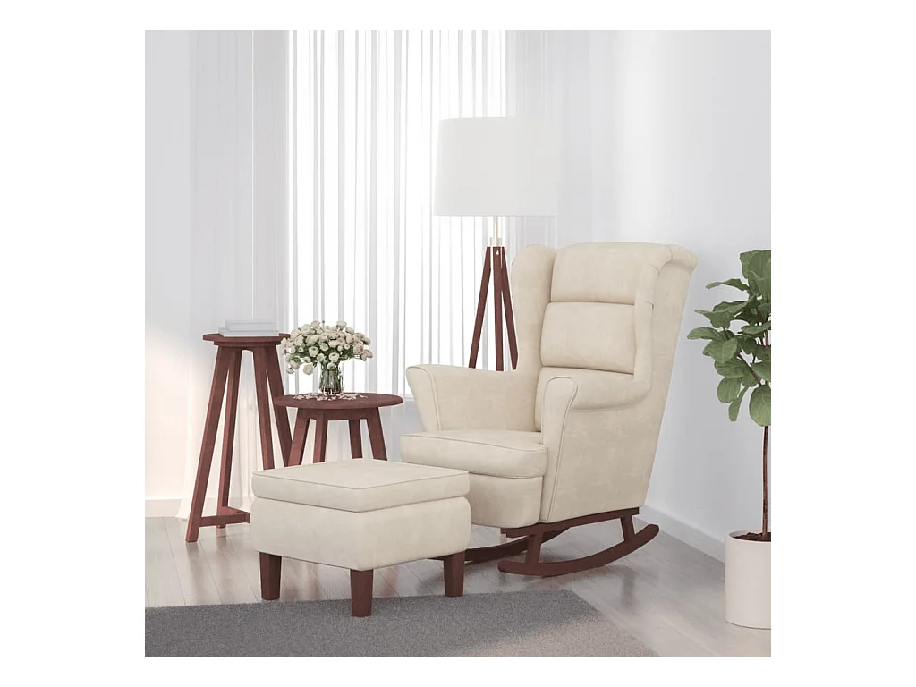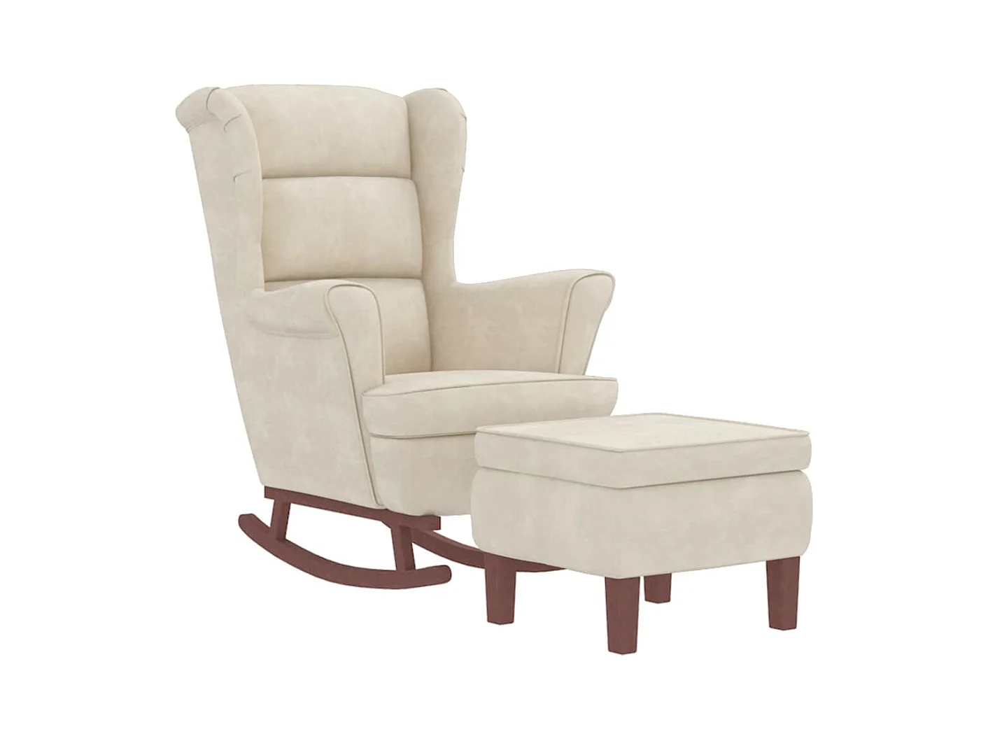 Cadeira de balanço com pés de madeira e banquinho Cream Velvet