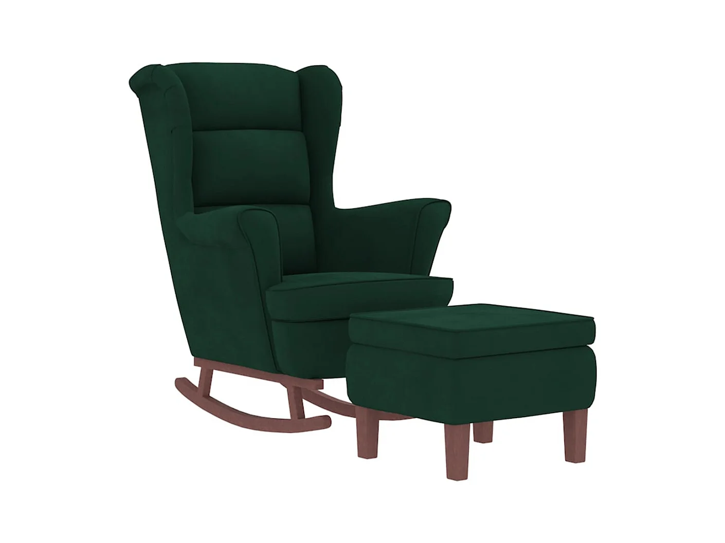 Cadeira de balanço com pés e banquinho de madeira Verde escuro