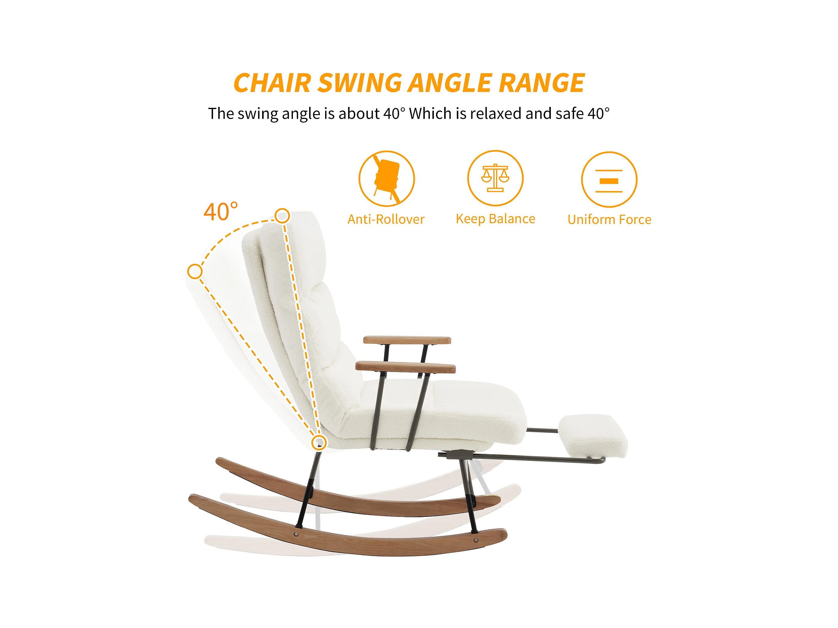 Cadeira de baloiço com aspeto de lã e braços, cadeira de amamentação, branca