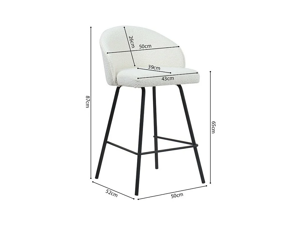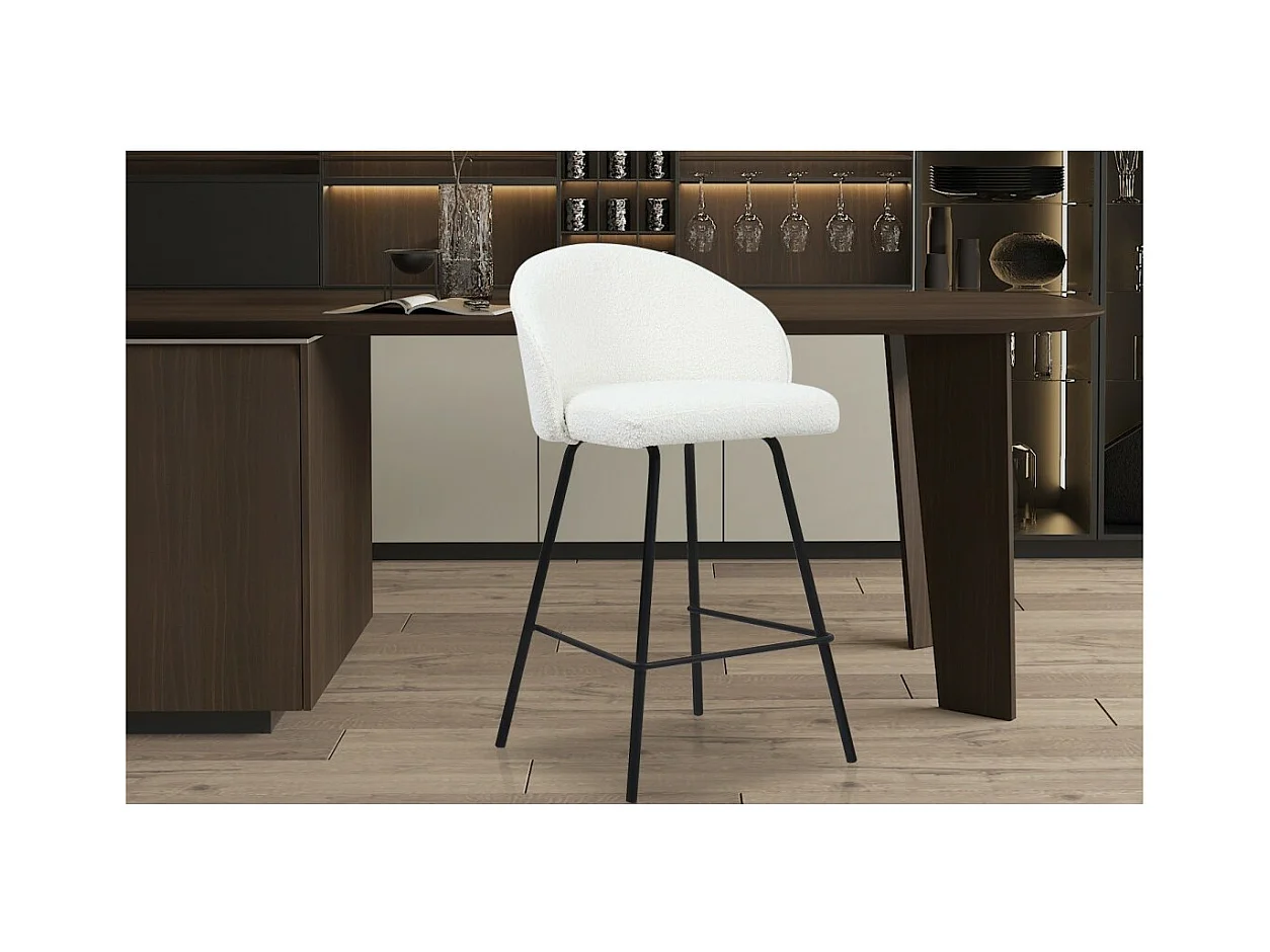 Cadeira de balcão 'Juni' Bouclé Branco, dimensões: A87 x L52 x P51 cm