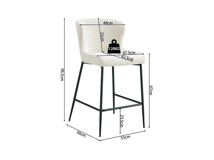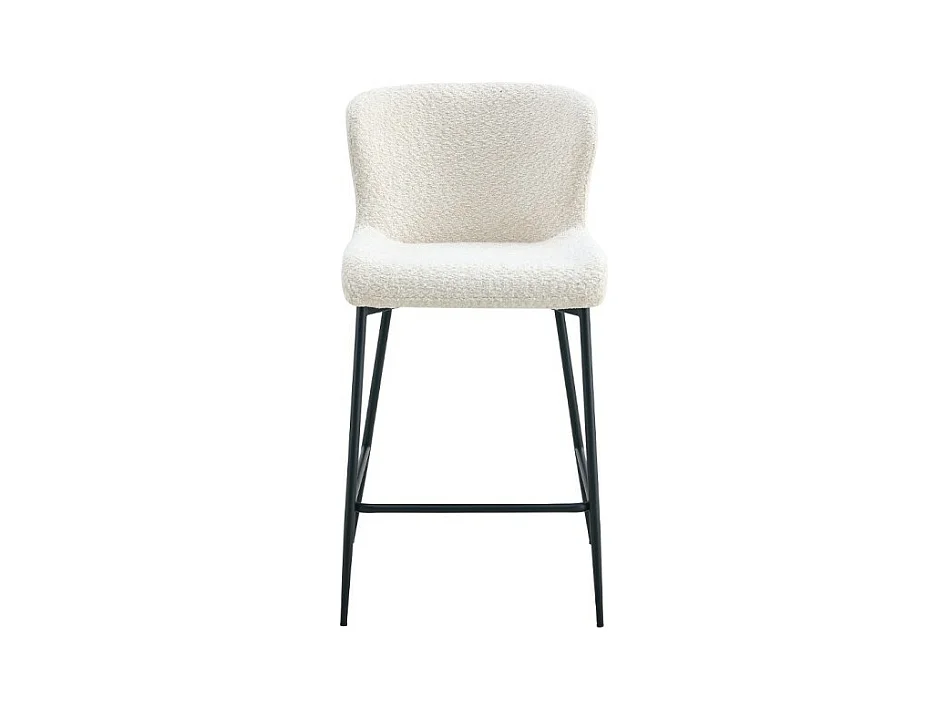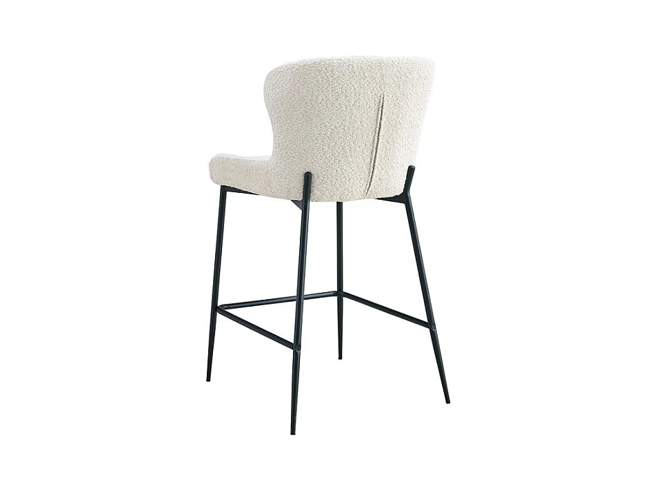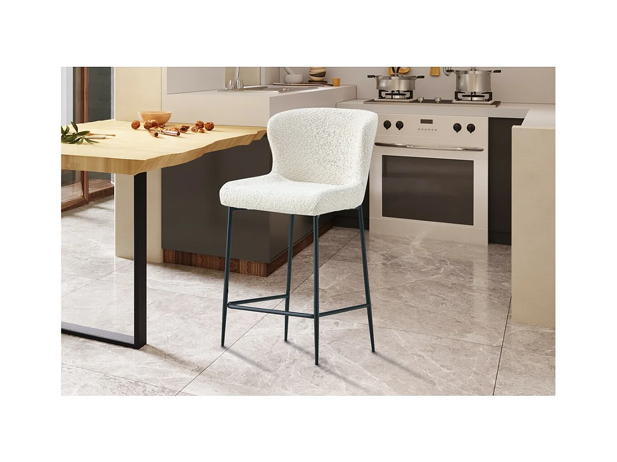 Cadeira de balcão LISE – Tecido bouclé na cor branco cru – Pés em metal preto – Estilo design/industrial