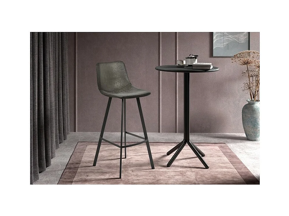 Banco de bar MCW-C33, cinzento mate, pernas claras, imitação de pele