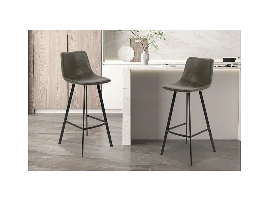 Banco de bar MCW-E55 (conjunto de 2), imitação de pele camurça cinzenta