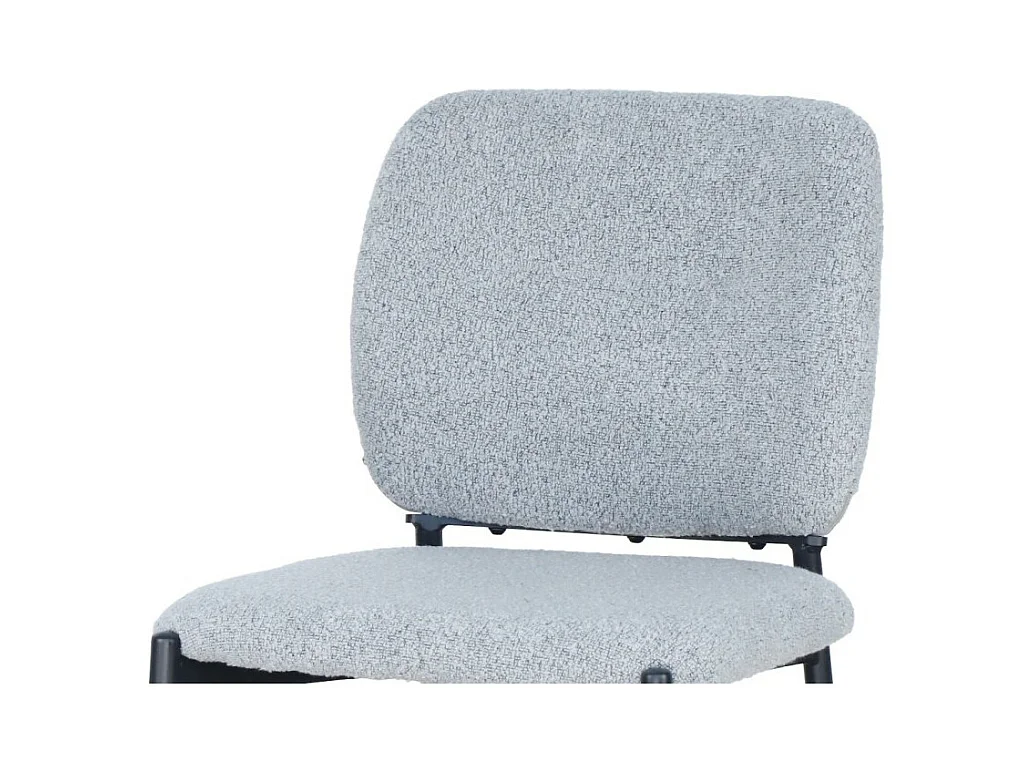 Cadeira de balcão LISE – Tecido bouclé na cor cinza escuro – Pés de metal preto – Estilo design/industrial
