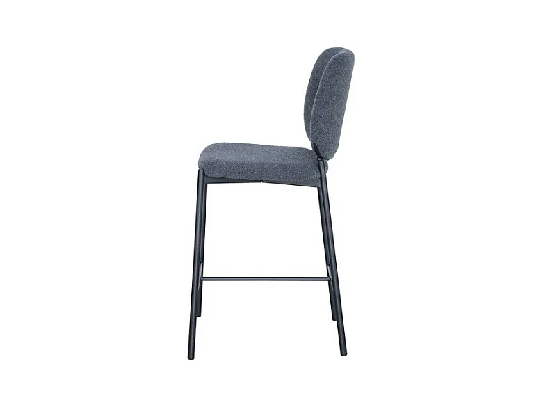 Cadeira de balcão LISE – Tecido bouclé na cor cinza escuro – Pés de metal preto – Estilo design/industrial
