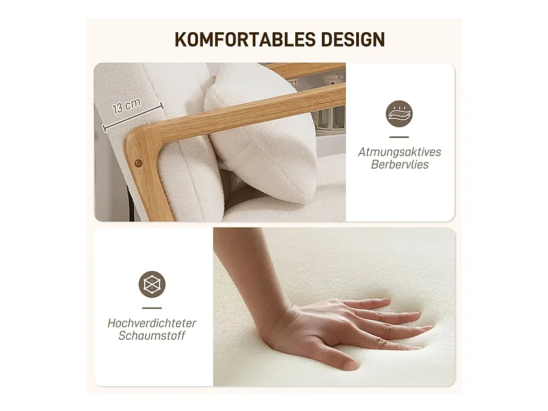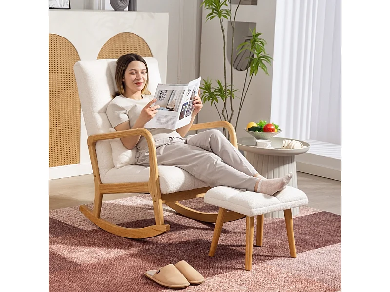 Cadeira de baloiço com apoio para os pés, cadeira de baloiço com capa de lã, apoios de braços