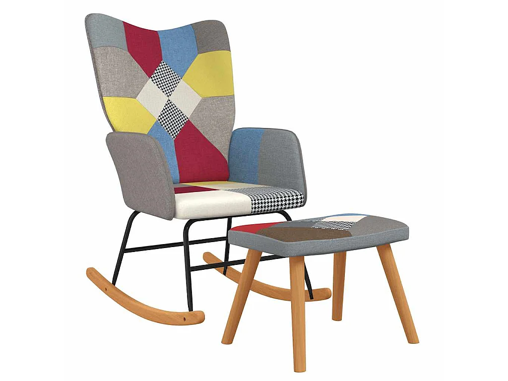 Cadeira de baloiço com banco tecido de retalhos