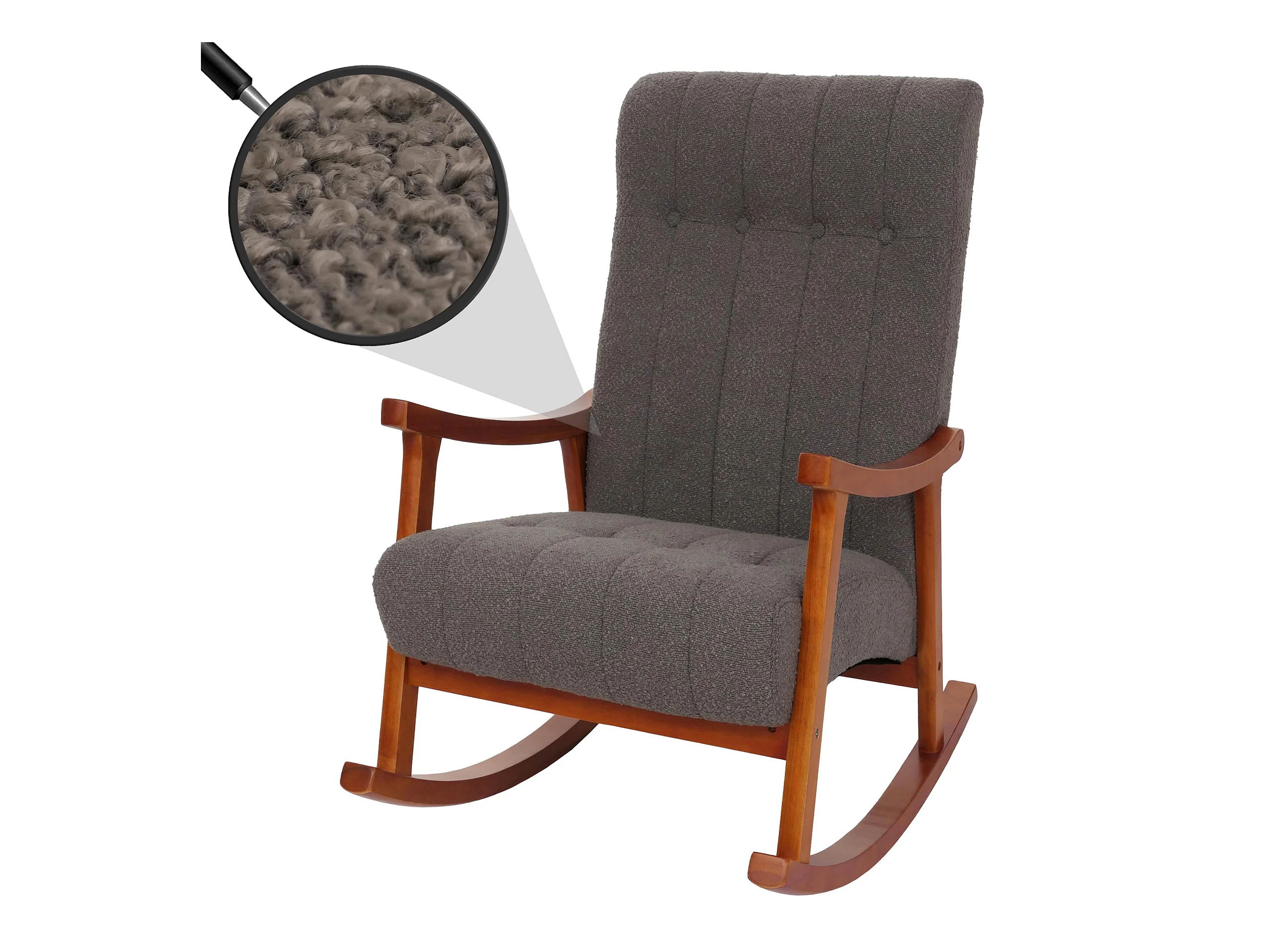 Cadeira de balanço MCW-K10, cinza escuro, estrutura com acabamento em nogueira