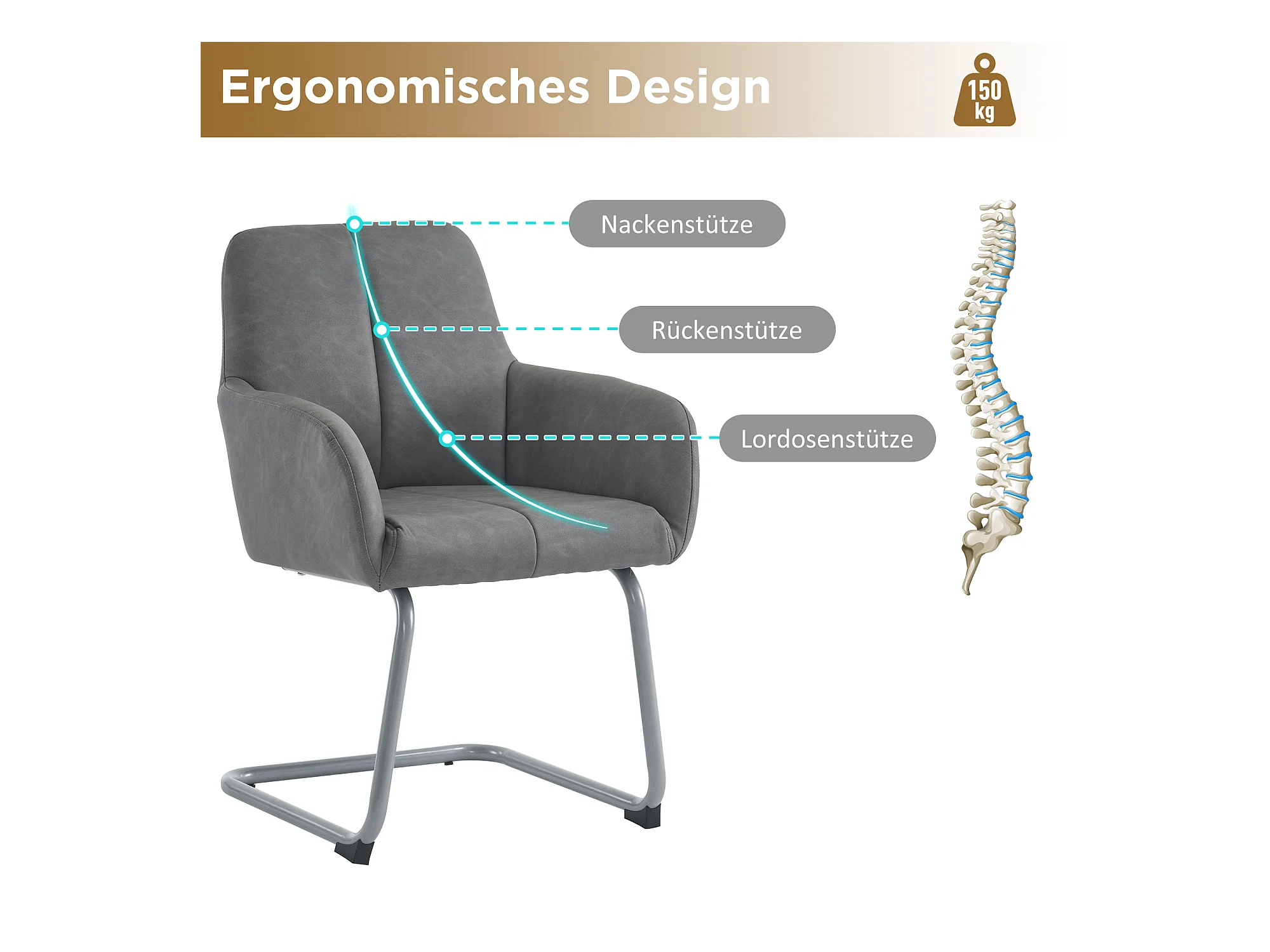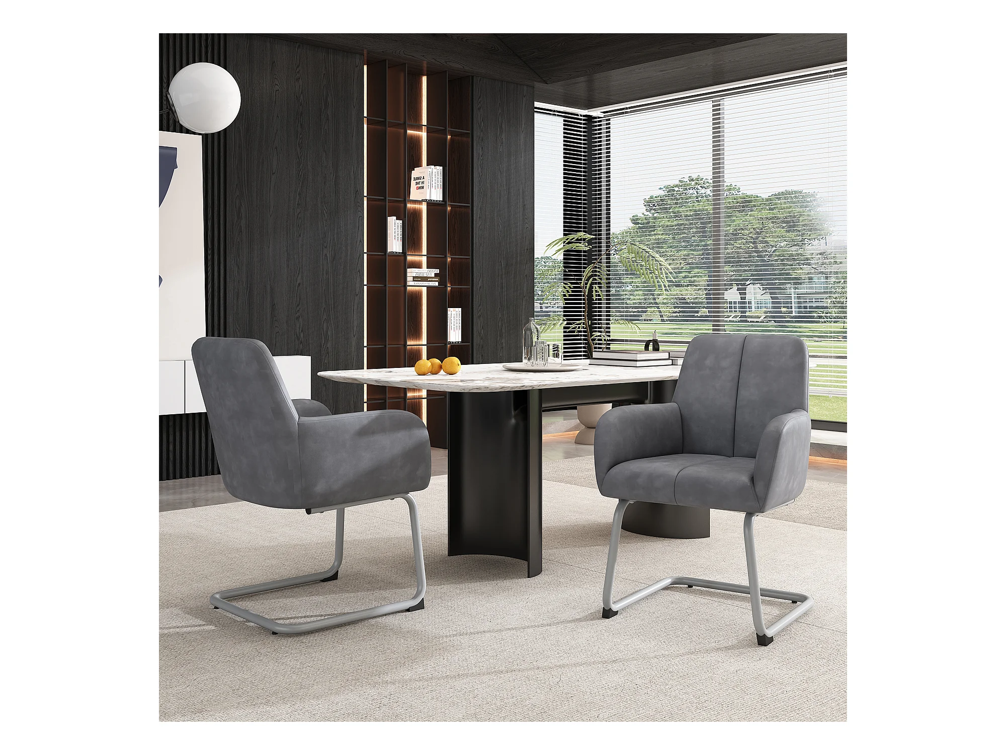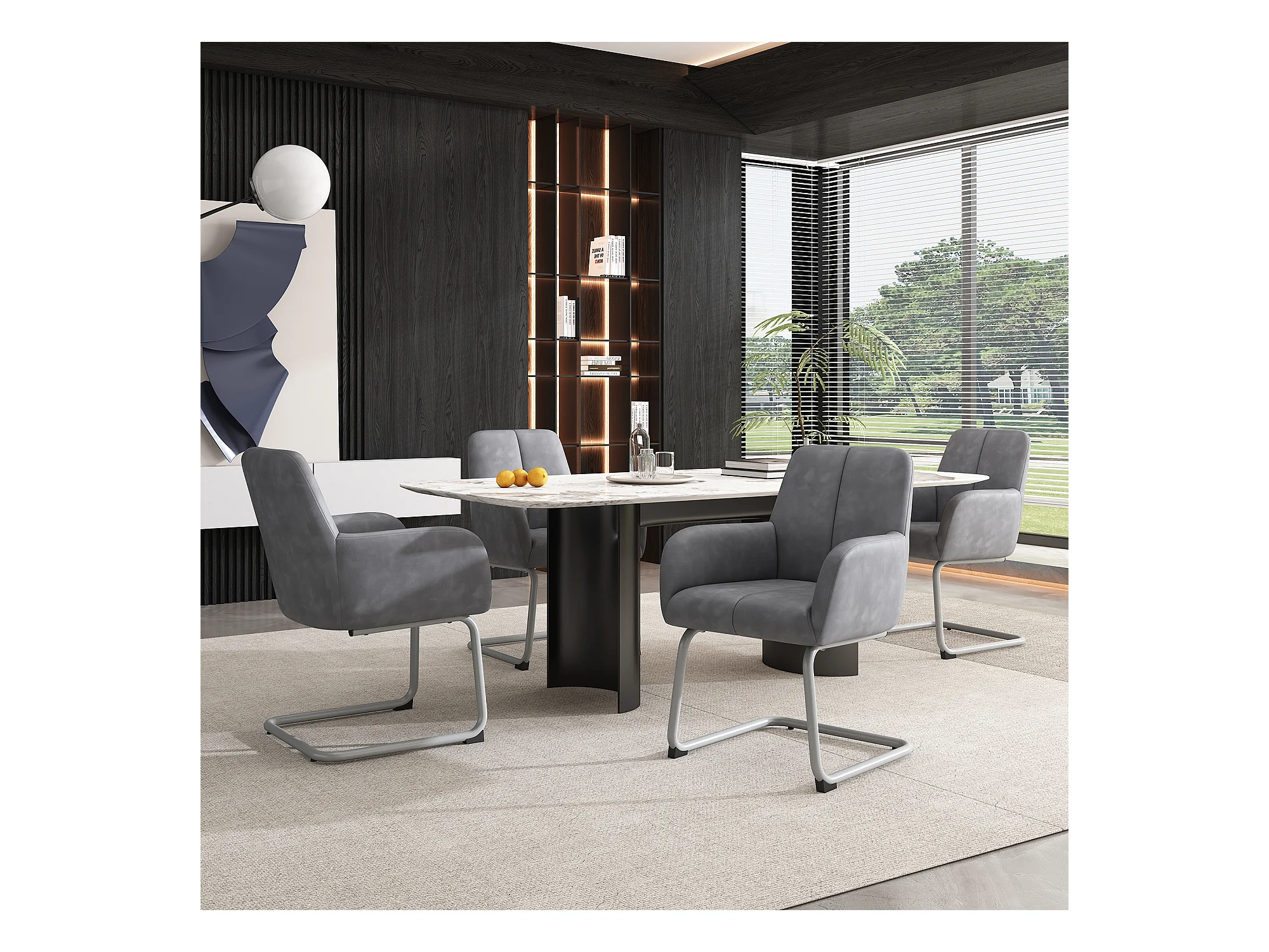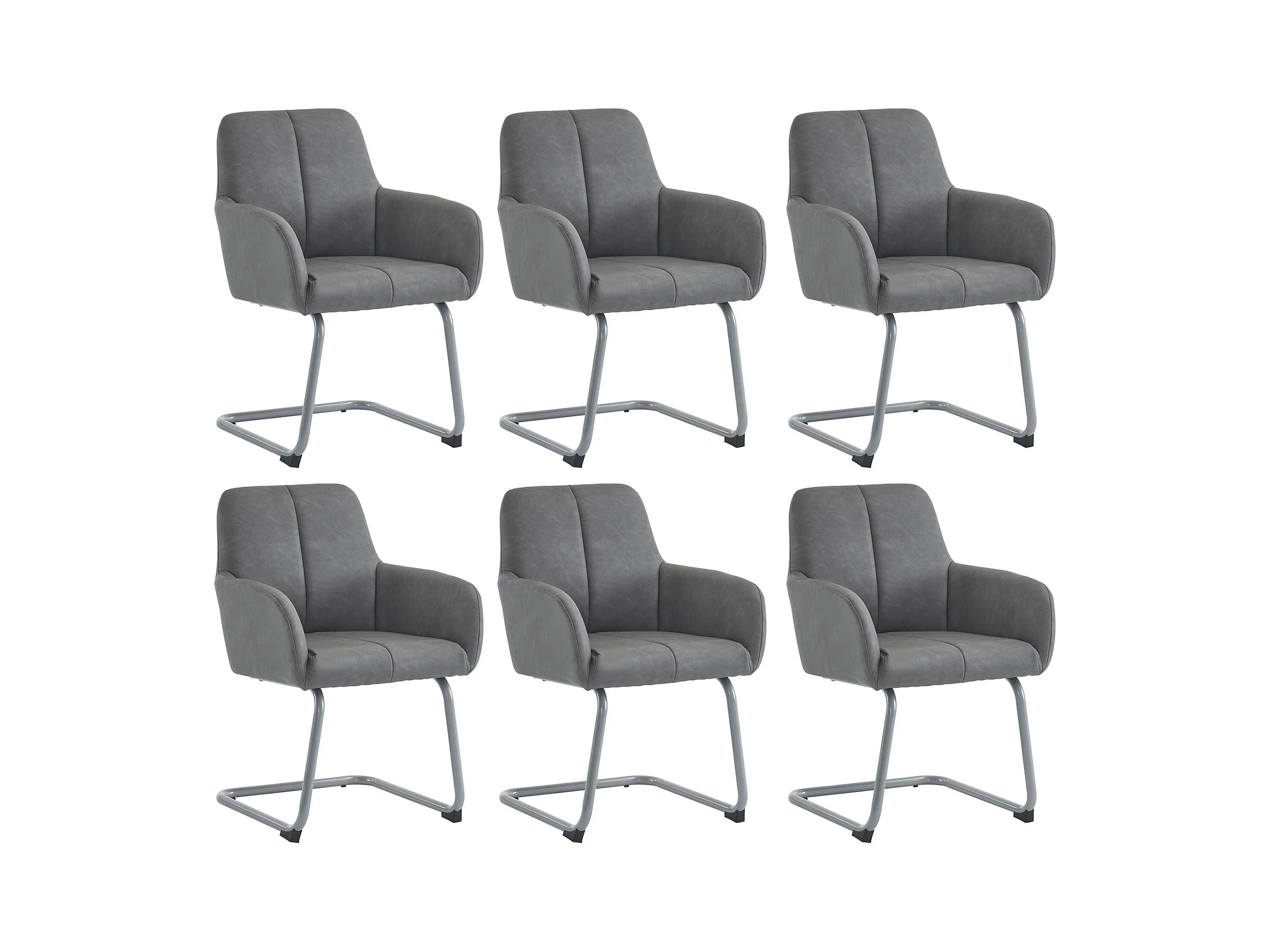 Cadeira de couro de microfibra cinza com braços, pernas de metal arqueadas, estilo moderno para sala de estar ou quarto, conjunto de 6