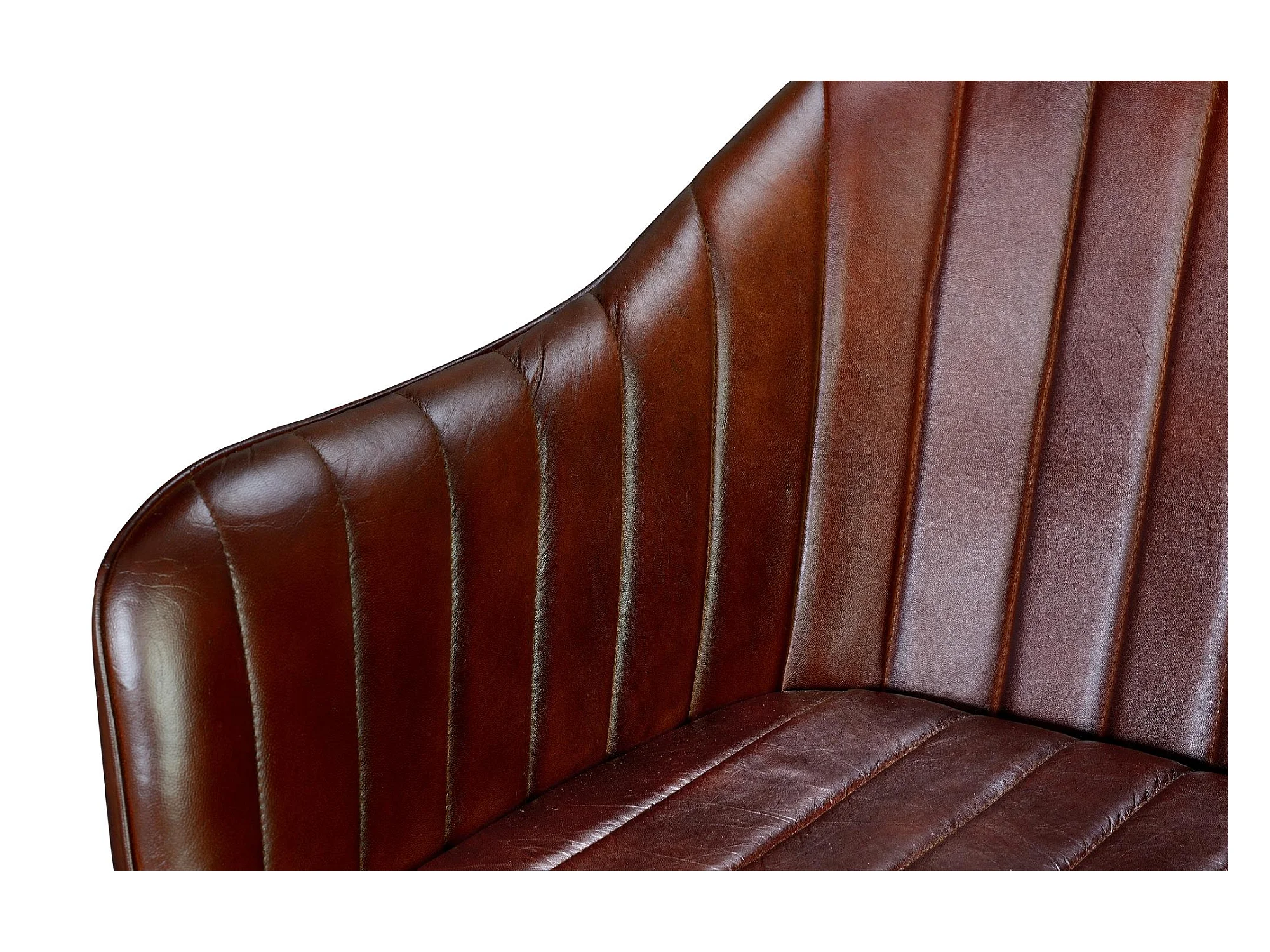 Cadeira estofada em couro marrom envelhecido com encosto acolchoado