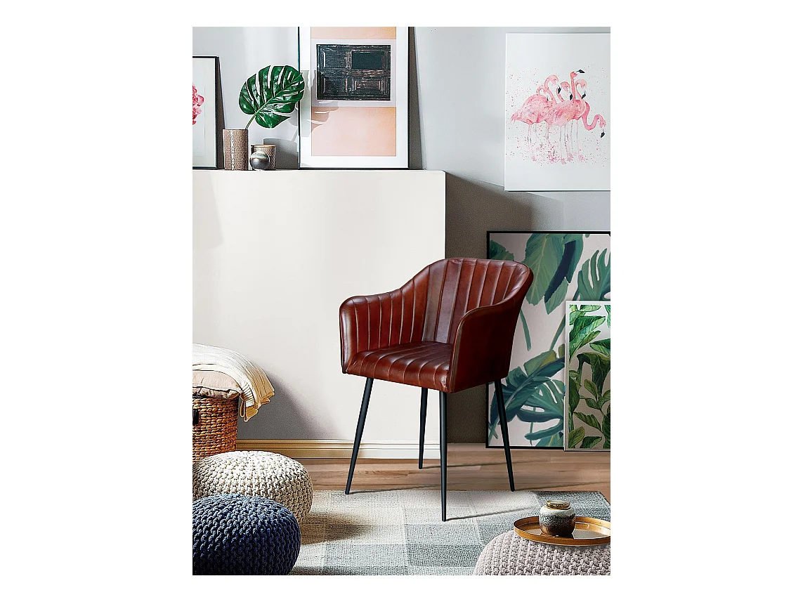 Cadeira de couro natural com pernas de metal marrom Marrón.Giner y Colomer.76x60x62