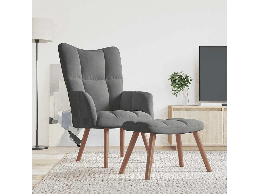 Cadeirão reclinável com apoio de pés veludo cinzento-escuro