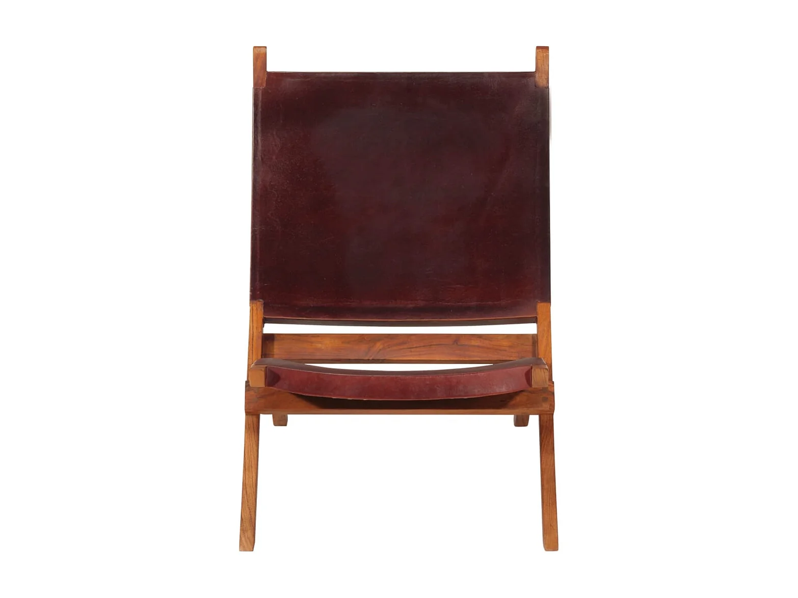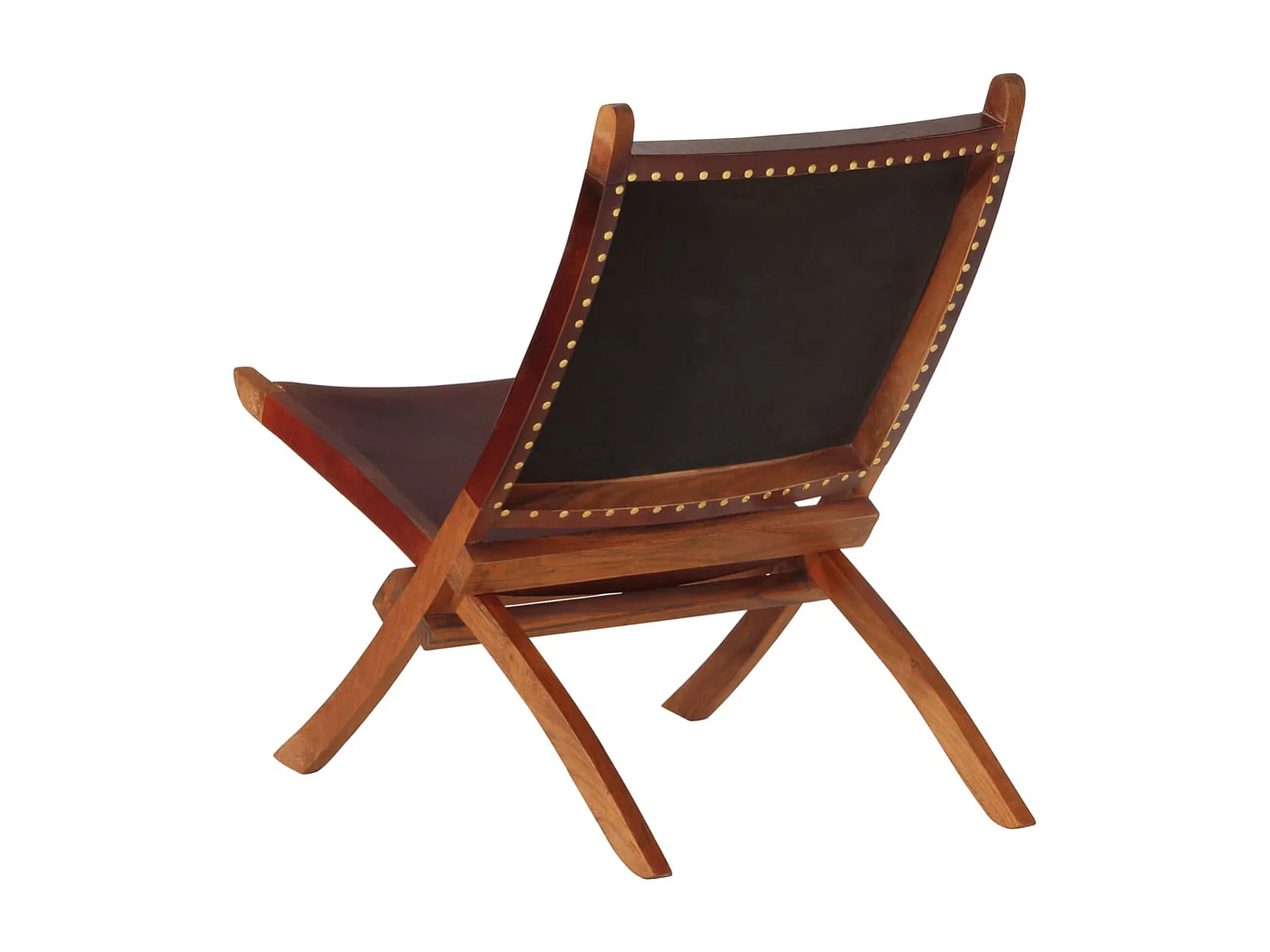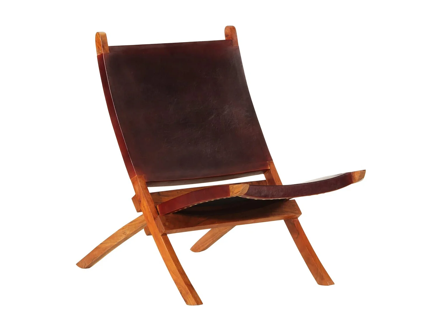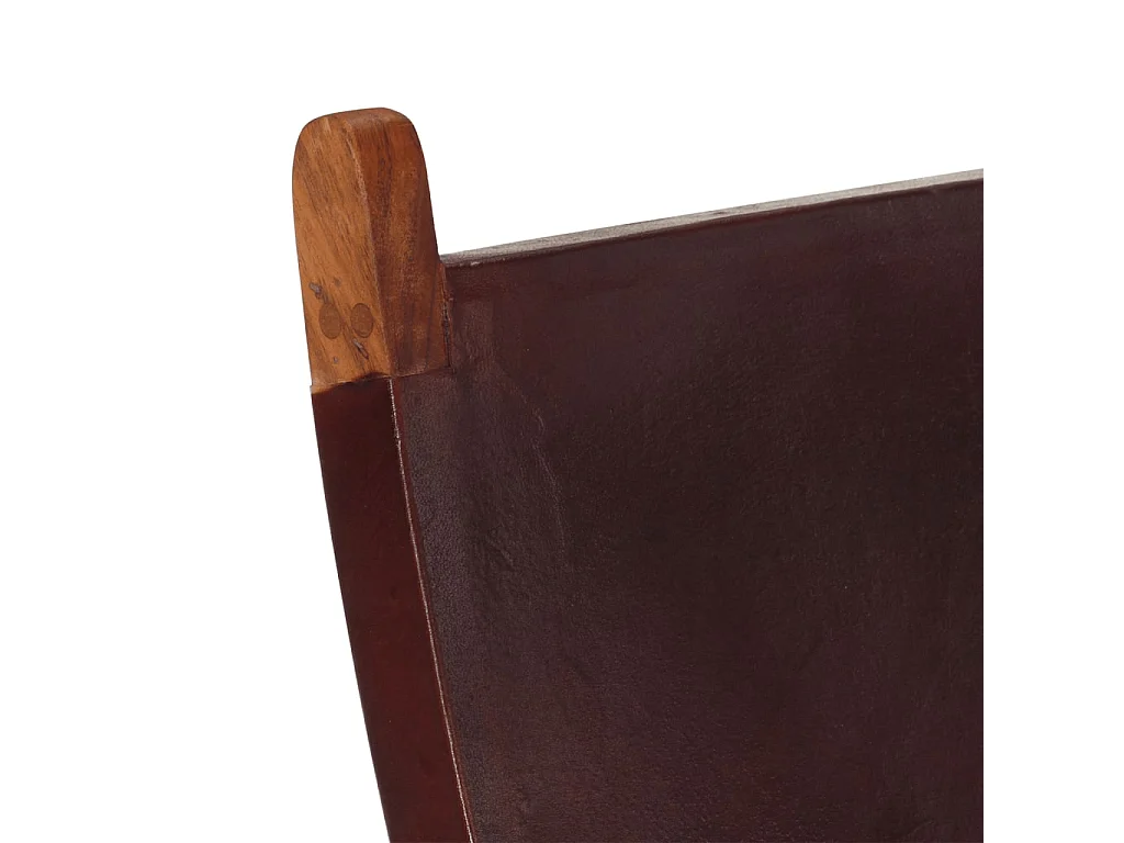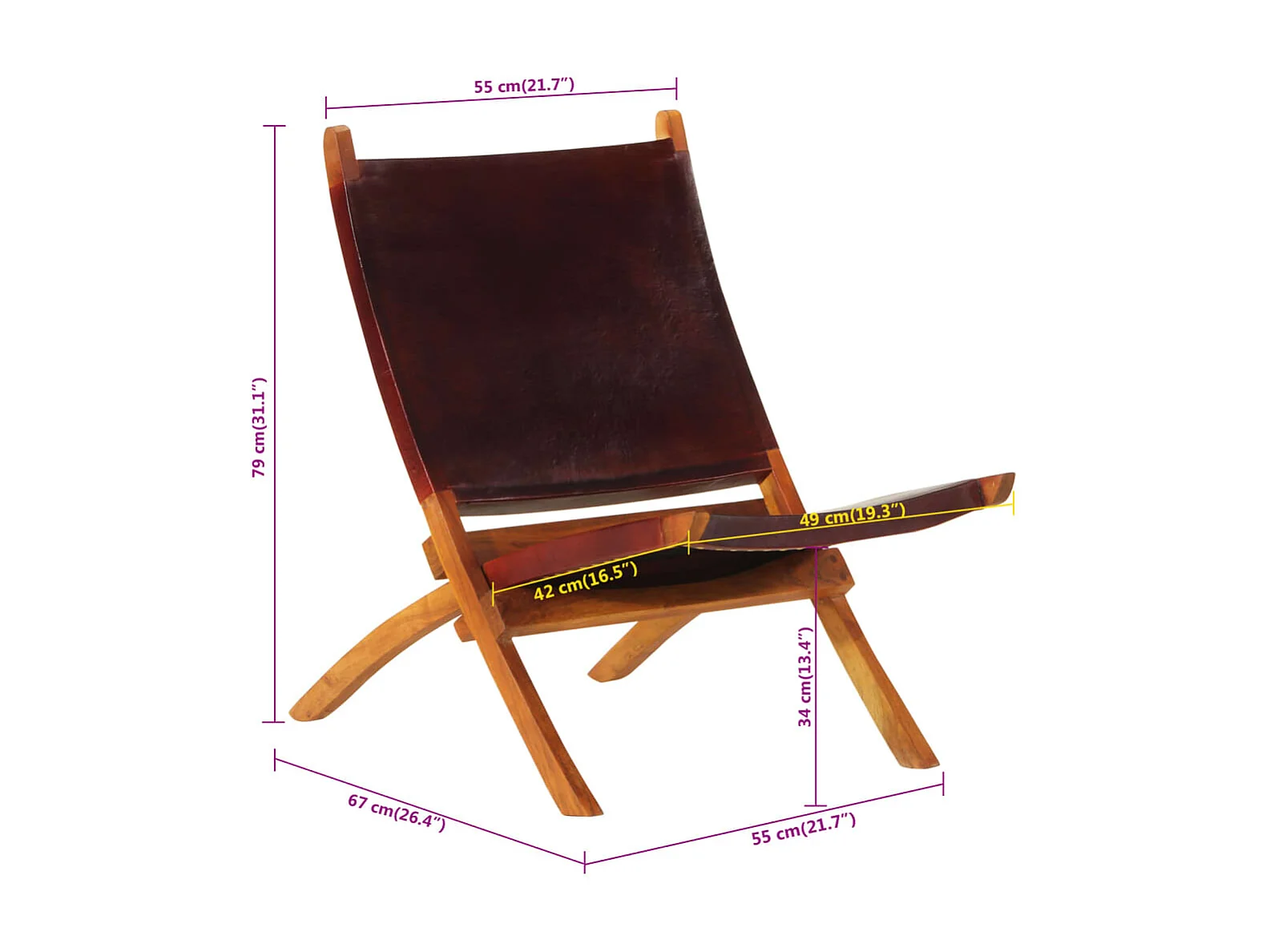 Cadeira de descanso dobrável couro genuíno castanho-escuro