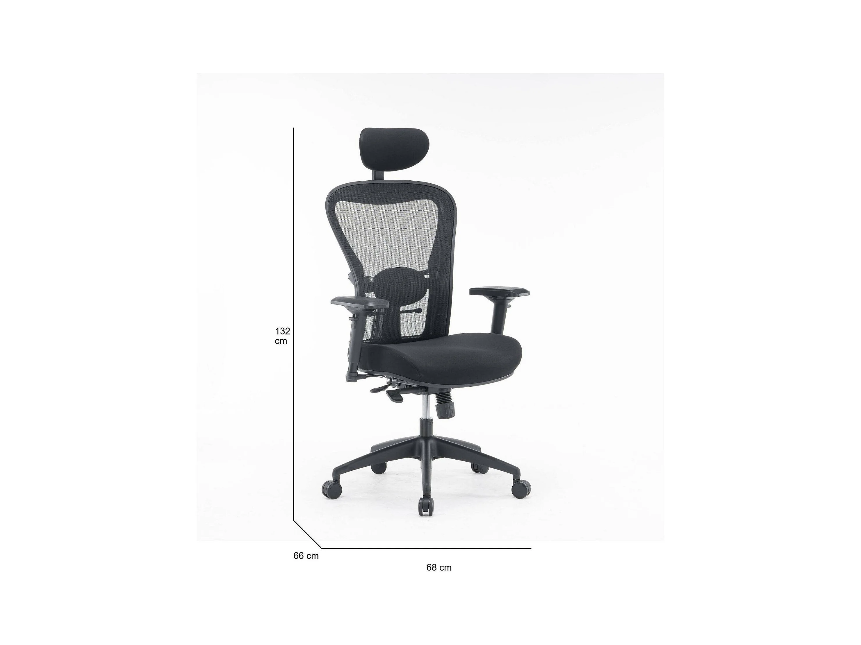 Cadeira de escritório Dachi, Poltrona executiva em malha com braços, Assento de escritório ergonômico, 66x68h120/132 cm, Preto