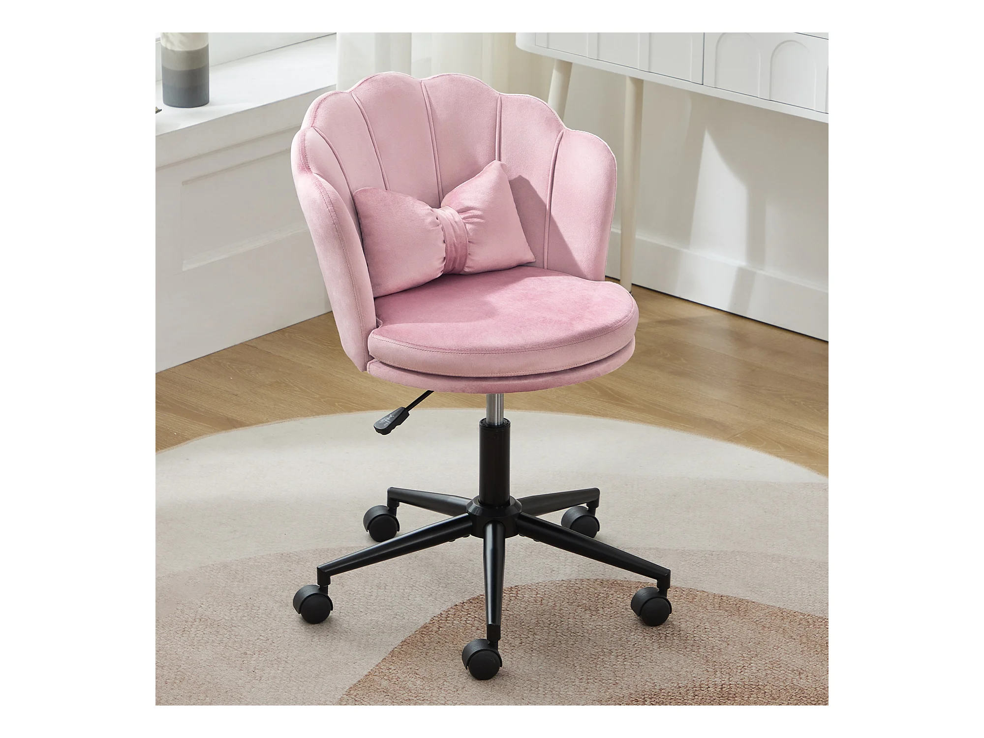 Cadeira de escritório cor-de-rosa, altura ajustável, encosto em forma de pétala