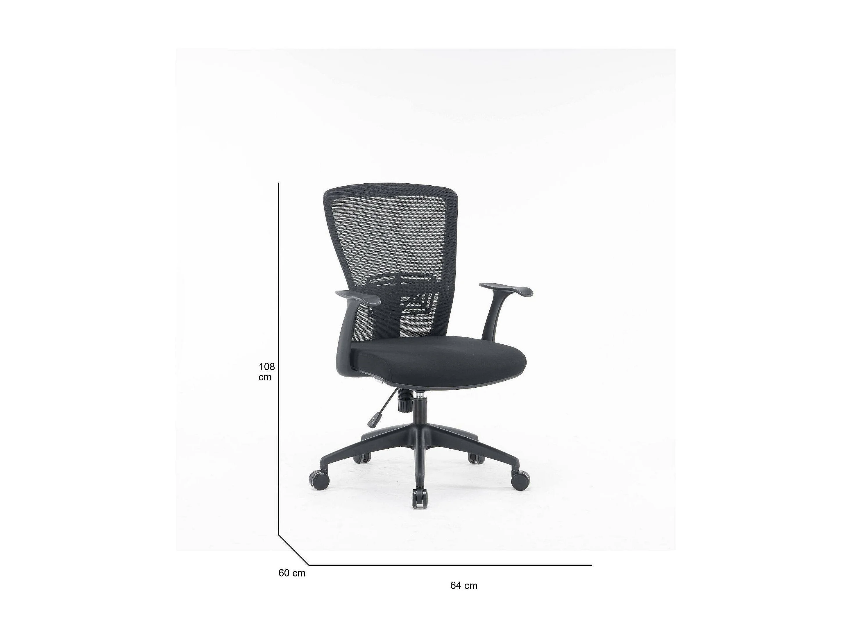 Cadeira de escritório Devonport, Cadeira de trabalho de malha com braços, Assento de escritório ergonômico, 60x64h98/108 cm, Preto