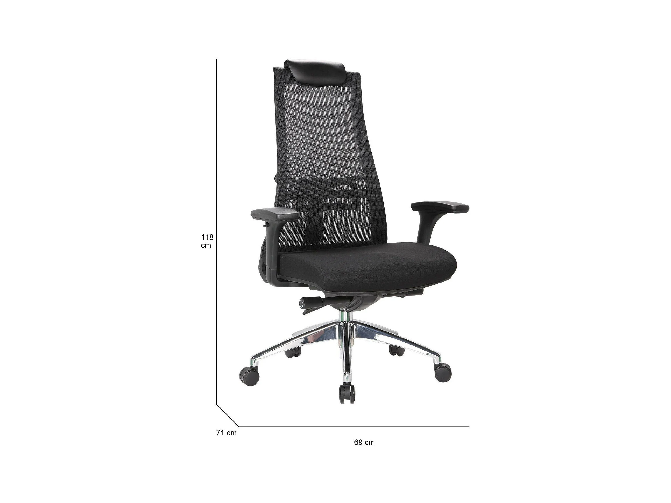 Cadeira de escritório Sydney, Poltrona executiva de malha com braços, Assento de escritório ergonômico, 71x69h110/118 cm, Preto