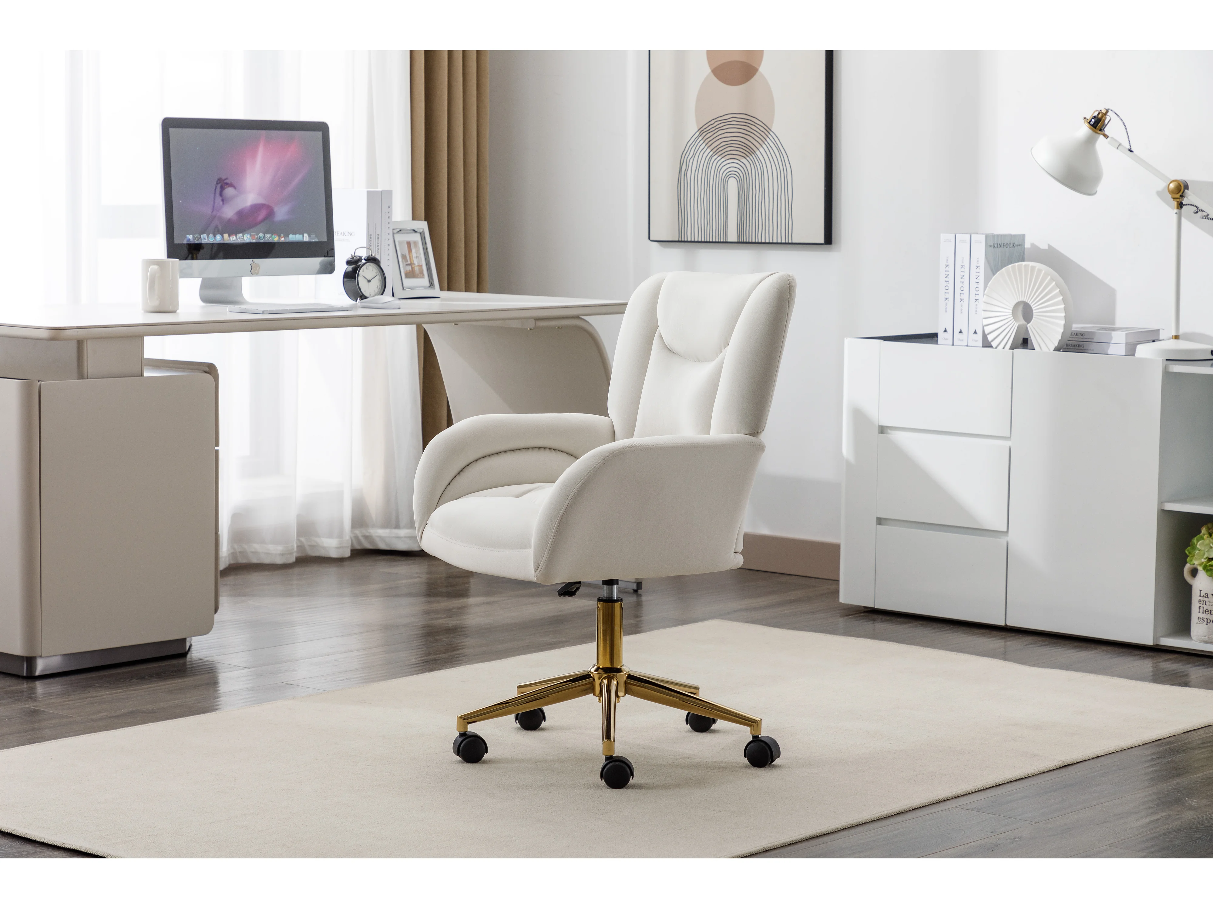 Cadeira de escritório em veludo Elfenbein, giratória 360°, interior ajustável, pernas douradas