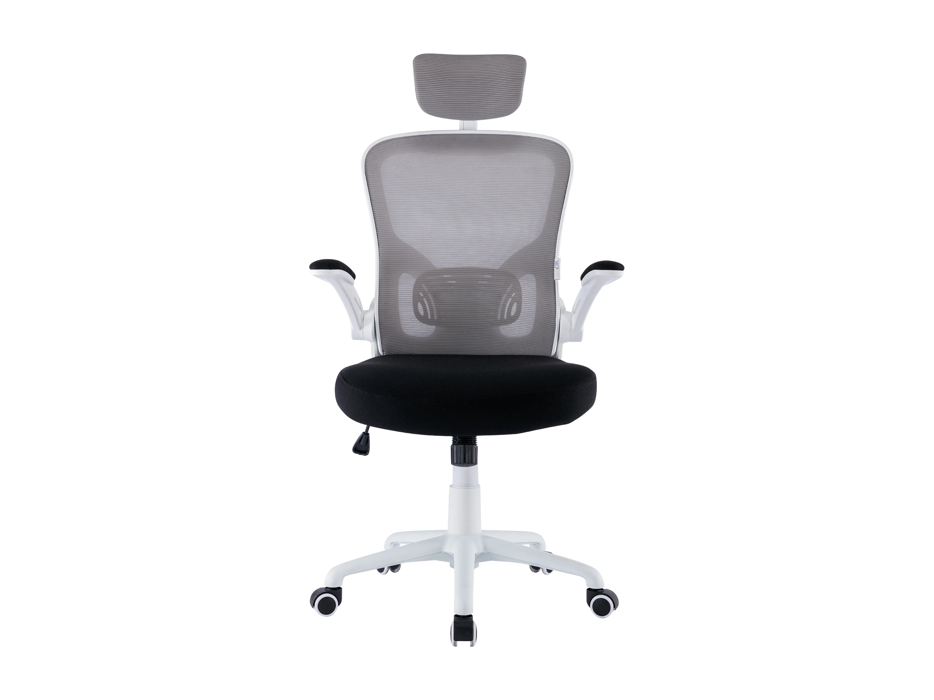 Cadeira de escritório ergonómica com apoios para os braços e apoio de cabeça oscilante, branca e cinzenta - ZIK