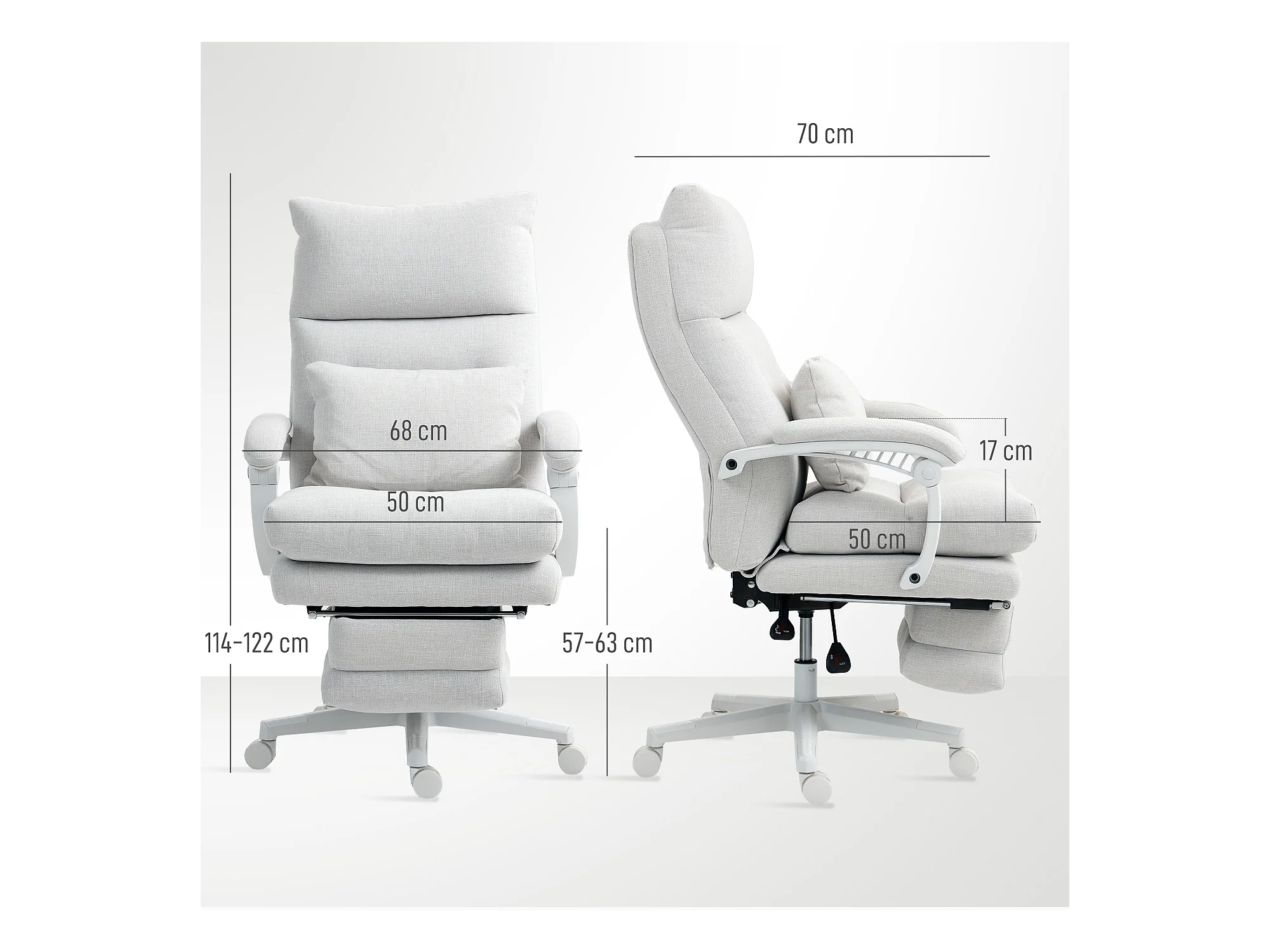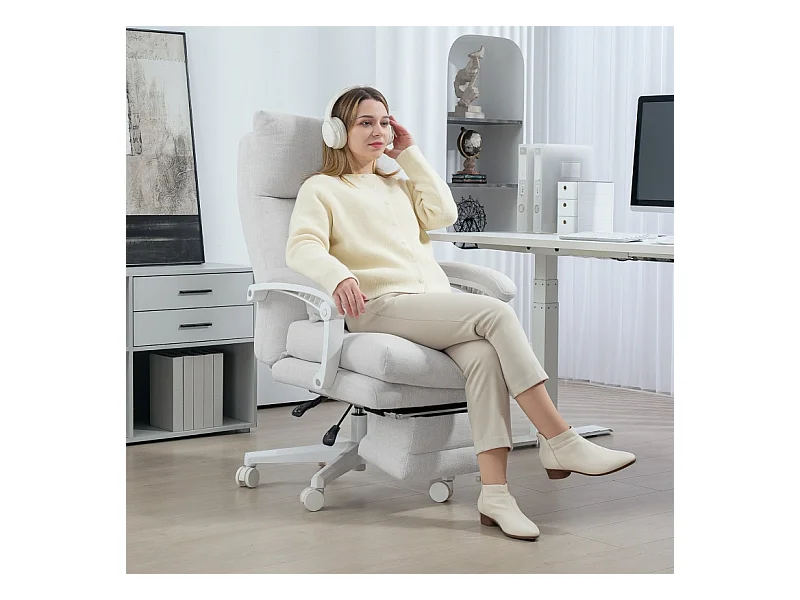 Cadeira de escritório ergonômica com encosto alto, apoio lombar, linho, reclinável, creme