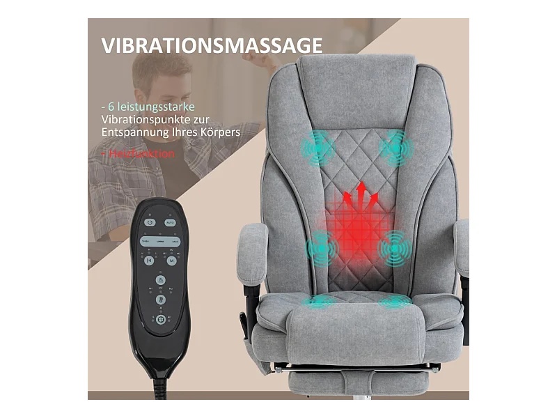 Cadeira de escritório ergonômica com massagem aquecida e apoio para os pés em tecido cinza