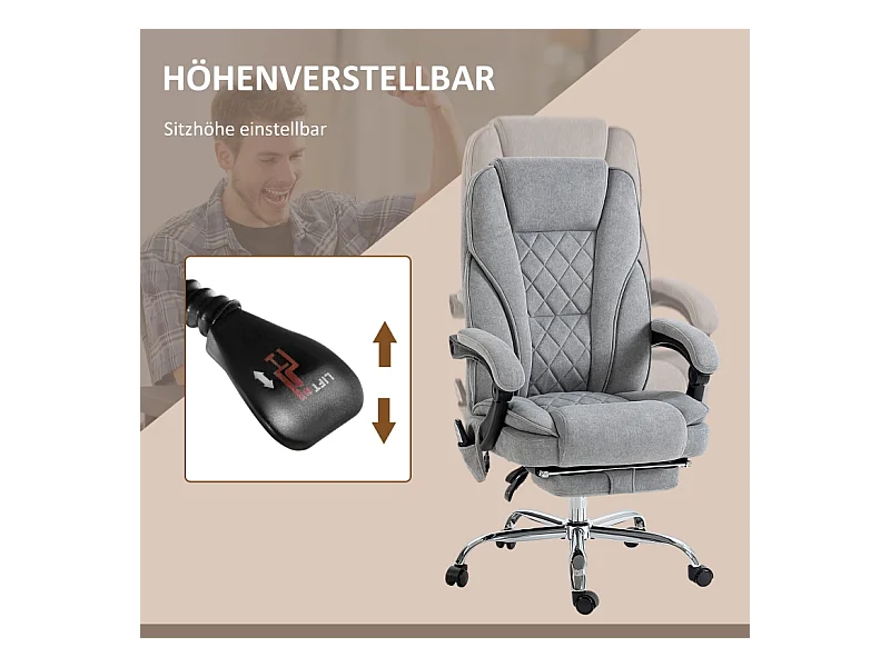Cadeira de escritório ergonômica com massagem e inclinação, estofamento em linho, cinza, giratória 360°