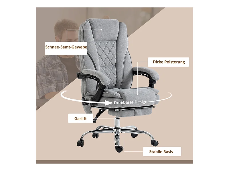 Cadeira de escritório ergonômica com encosto ajustável, inclinação de 155° e apoio para os pés em linho cinza