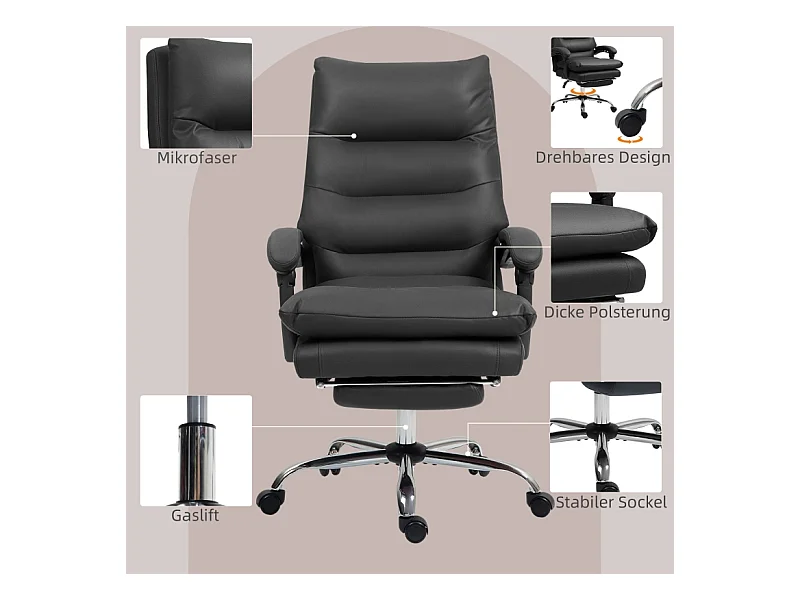 Cadeira de escritório ergonômica com massagem e apoio para os pés, função de aquecimento, preta