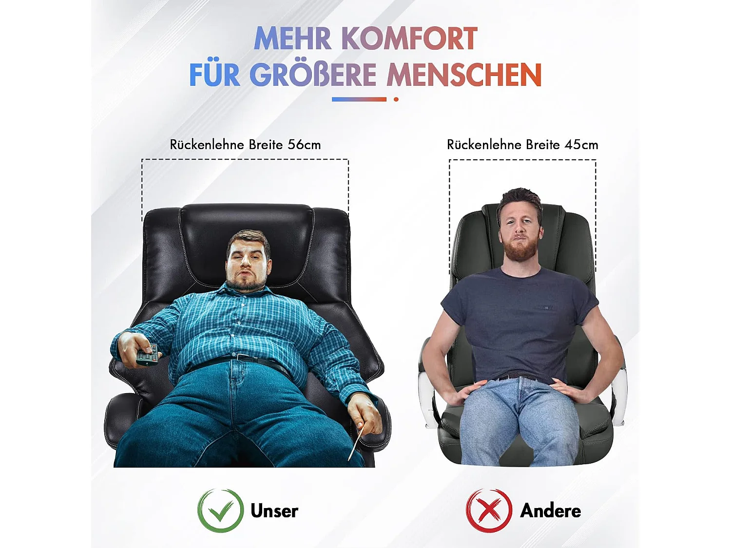 Cadeira de escritório ergonômica em couro sintético com massagem, vibração e apoio para os pés, preta, 68,5 x 68,5 x 119-127 cm