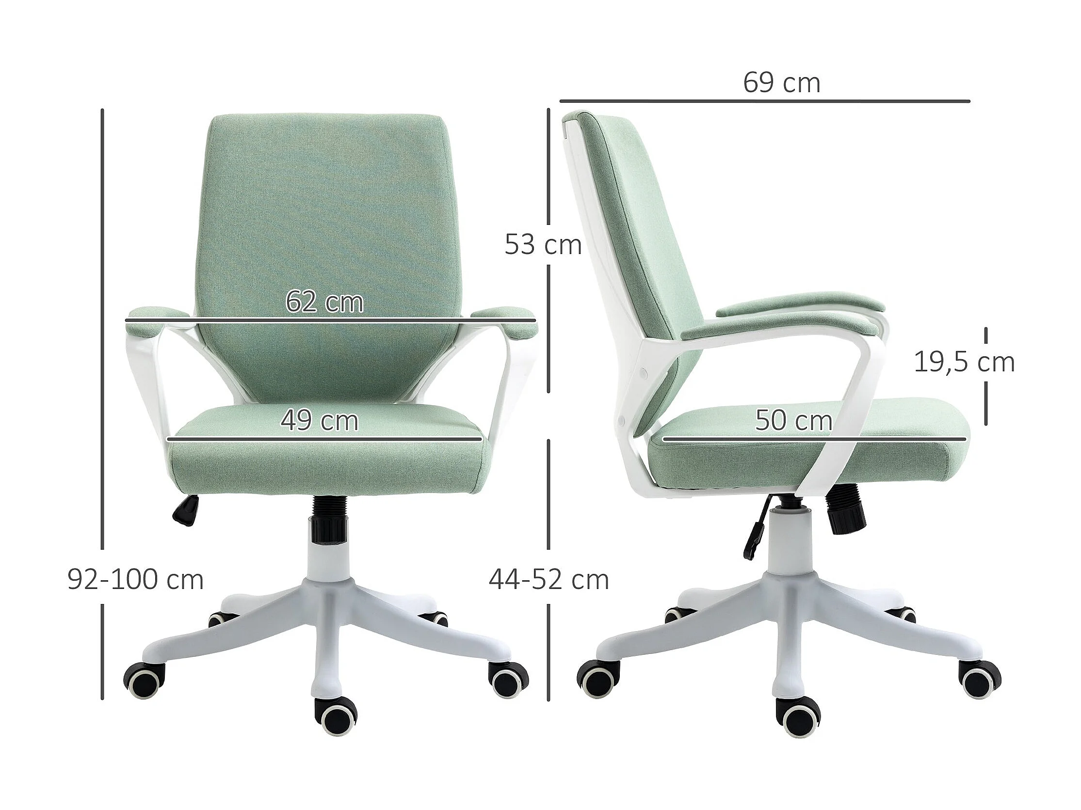 Cadeira de escritório - Giratória e regulável em altura - Tecido - verde - MLINAR