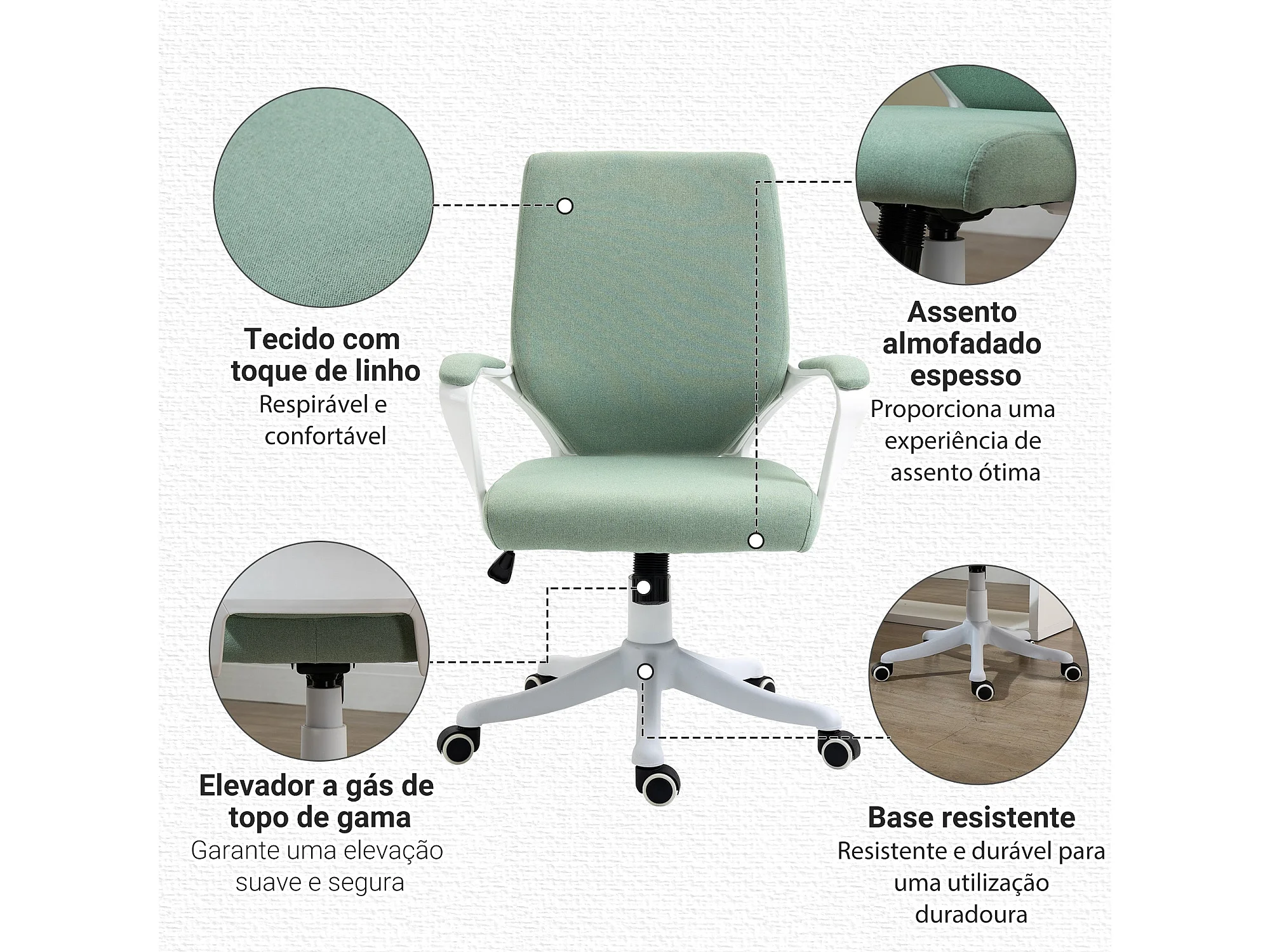 Cadeira de escritório giratória veludo verde-claro PT617405