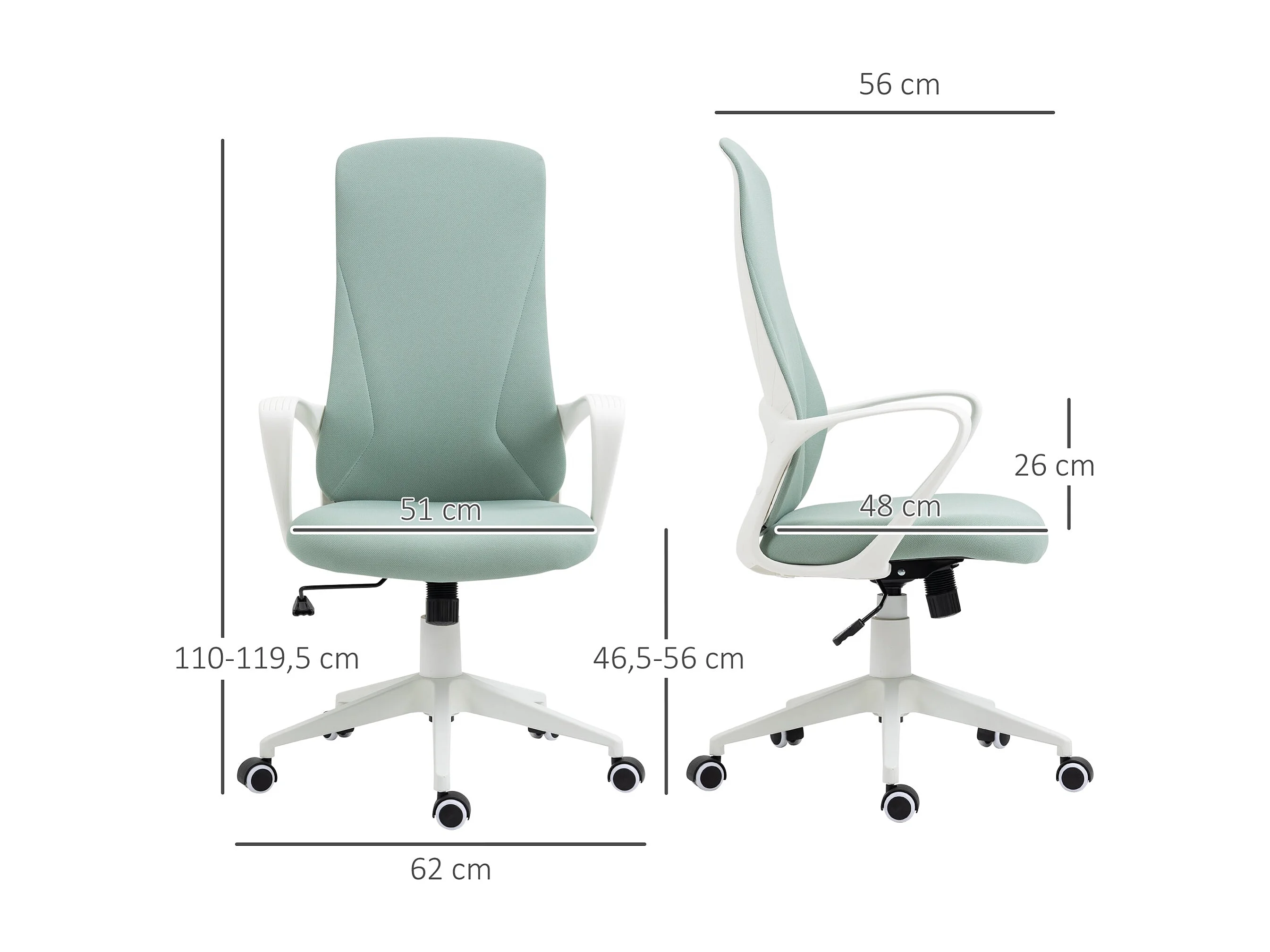 Cadeira de Escritório Ergonómica Vinsetto com Altura Ajustável e Apoio Lombar - Verde