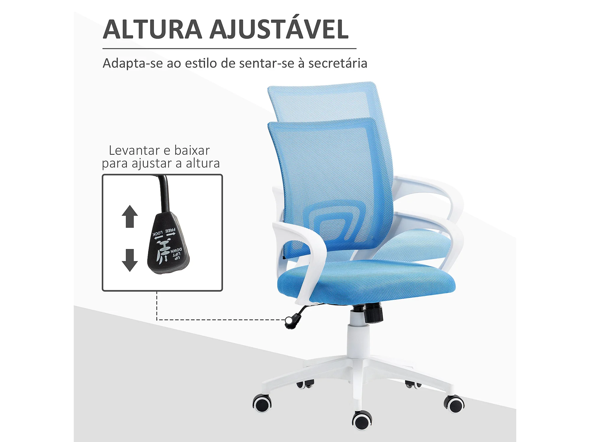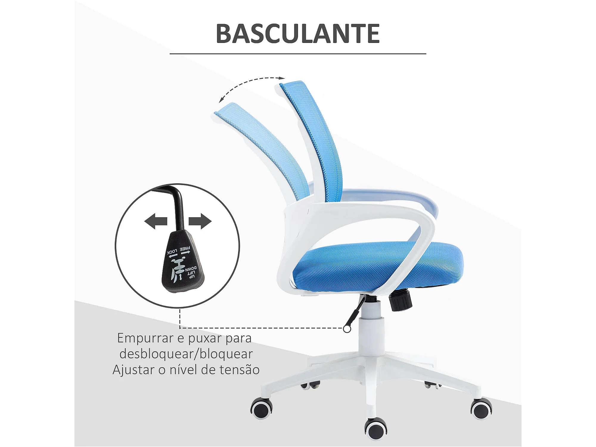 Cadeira de Escritório Giratória Ajustável em Malha Azul com Apoio para Braços e Função Basculante - Modelo Avignon