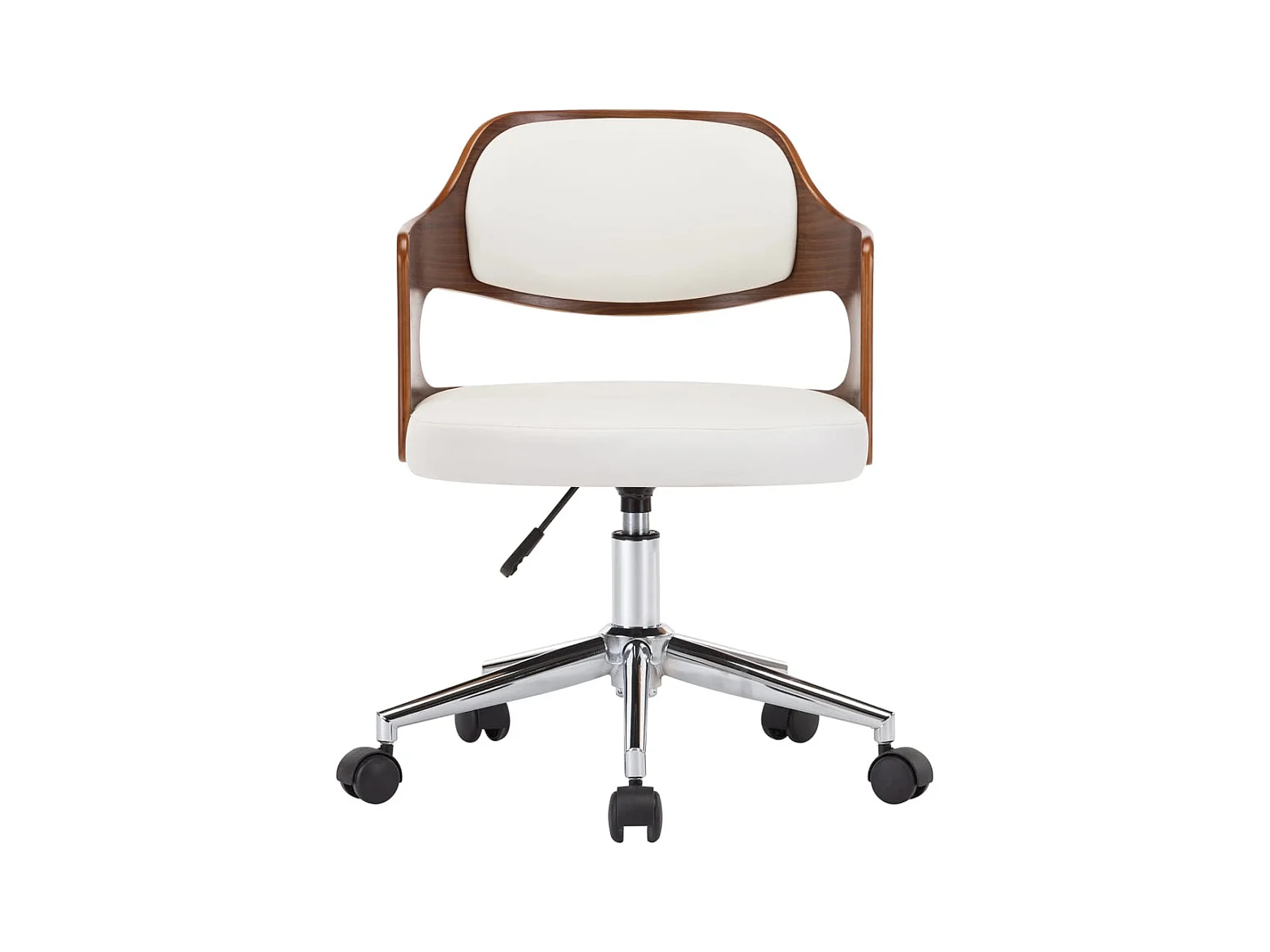 Cadeira de escritório giratória branca madeira dobrada e couro sintético