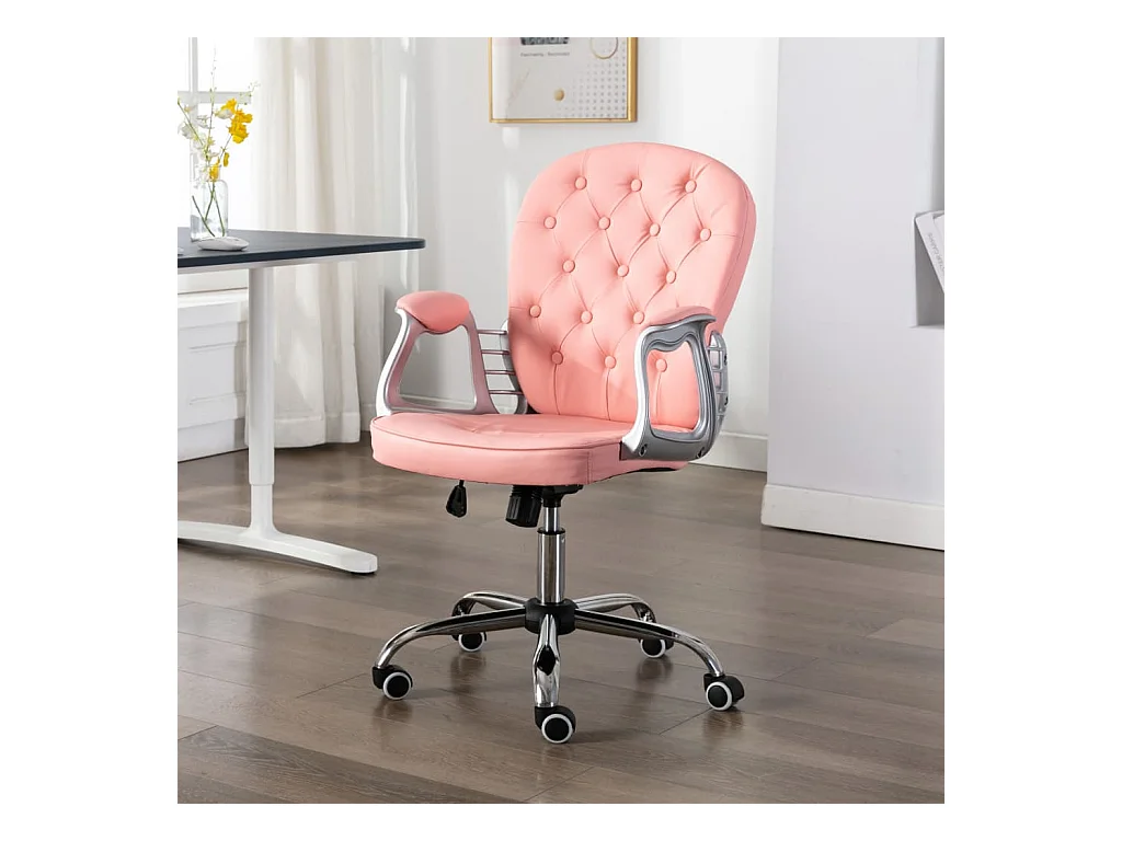 Cadeira de escritório giratória em couro artificial rosa PT583175