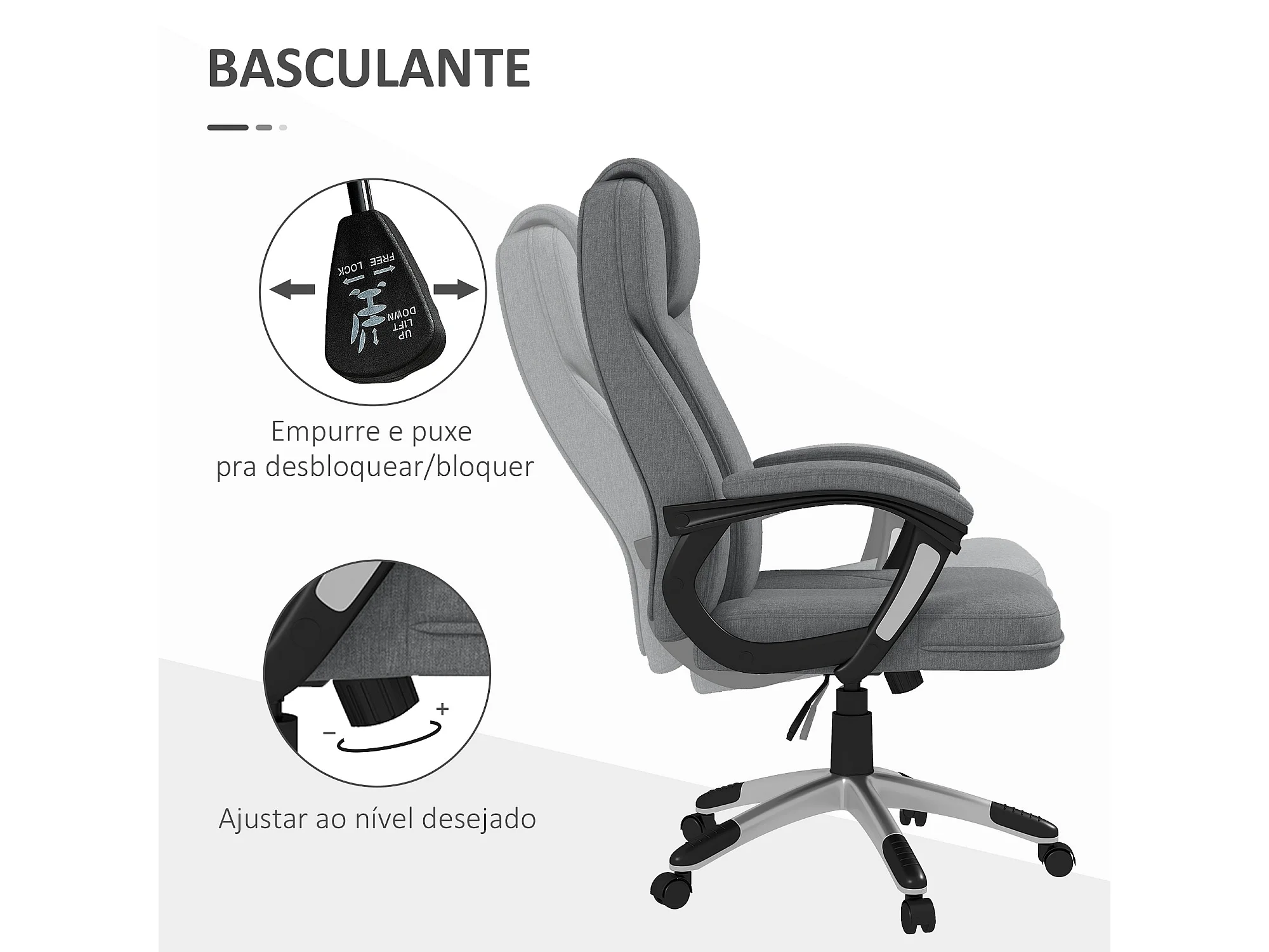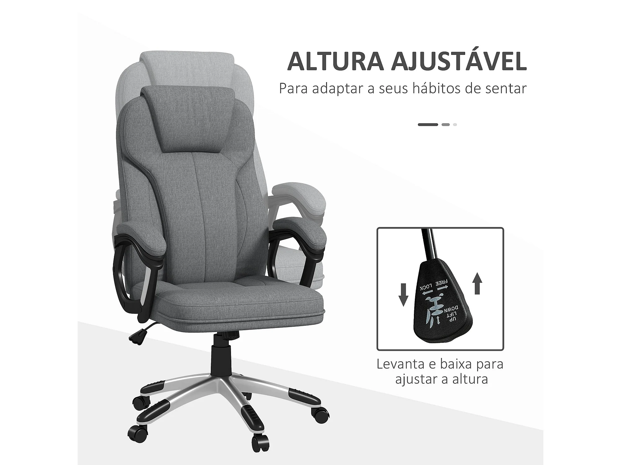 Cadeira de Escritório Giratória com Apoio de Cabeça e Suporte Lombar Ajustáveis - Modelo Cefalù em Cinza