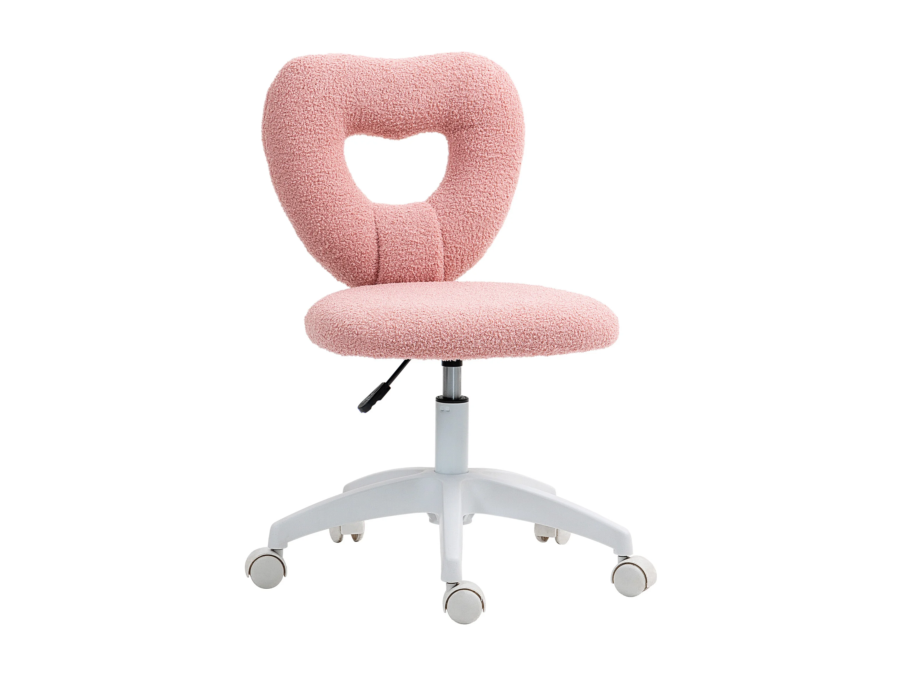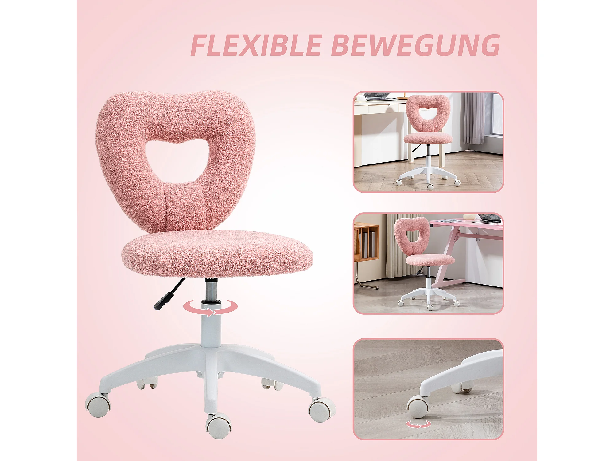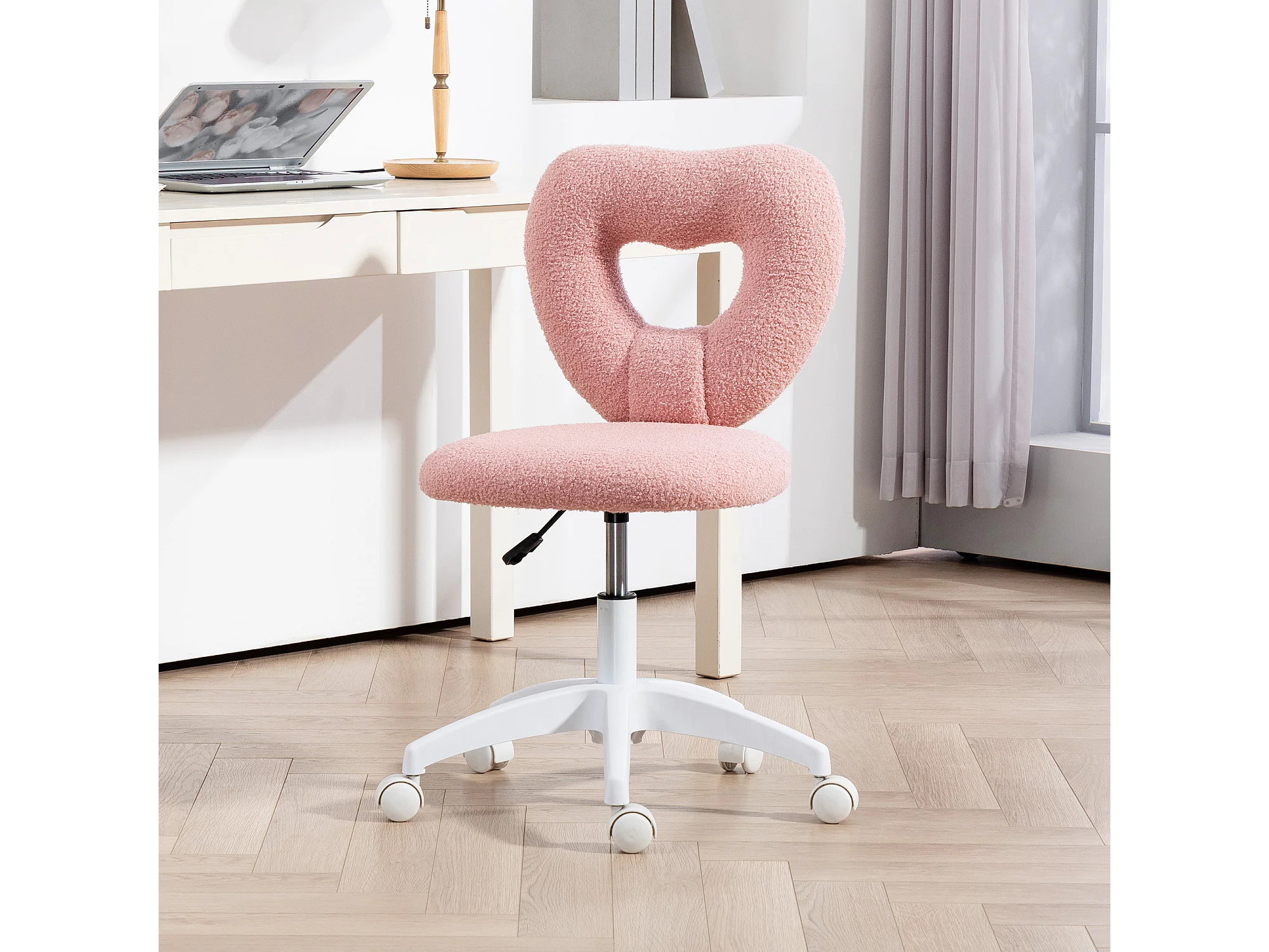 Cadeira de escritório giratória Teddy Fleece com encosto em forma de coração, ajustável, rosa