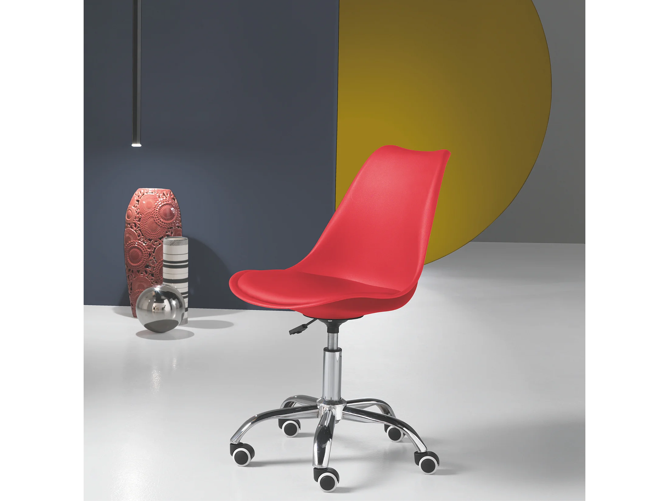 Cadeira de escritório giratória vermelha "Dorian" em polipropileno com assento em ecopele e base em metal cromado cm 49x47 82/96h