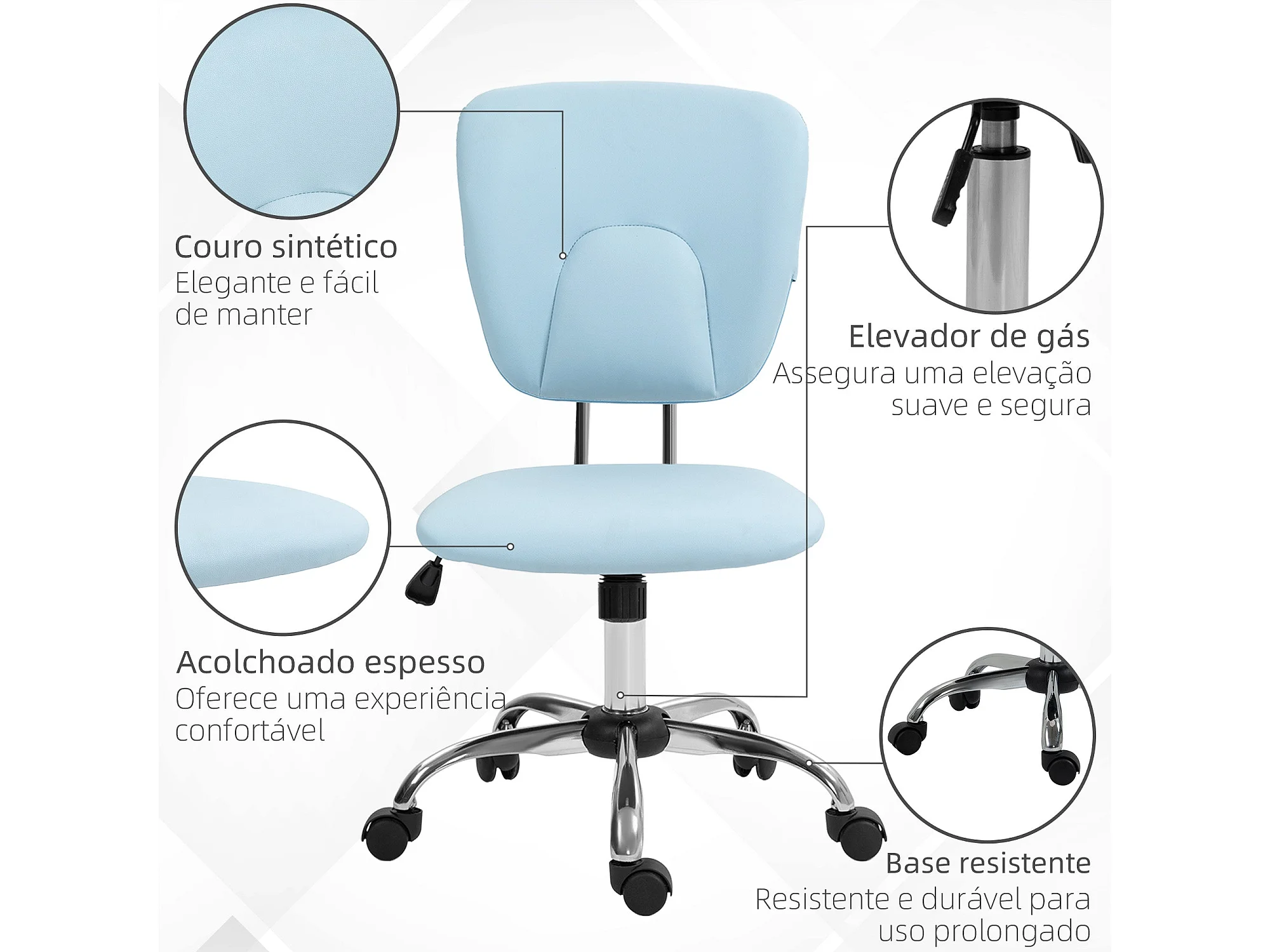 Cadeira de Escritório Giratória Vinsetto em Couro PU com Ajuste de Altura e Função Basculante Azul Claro