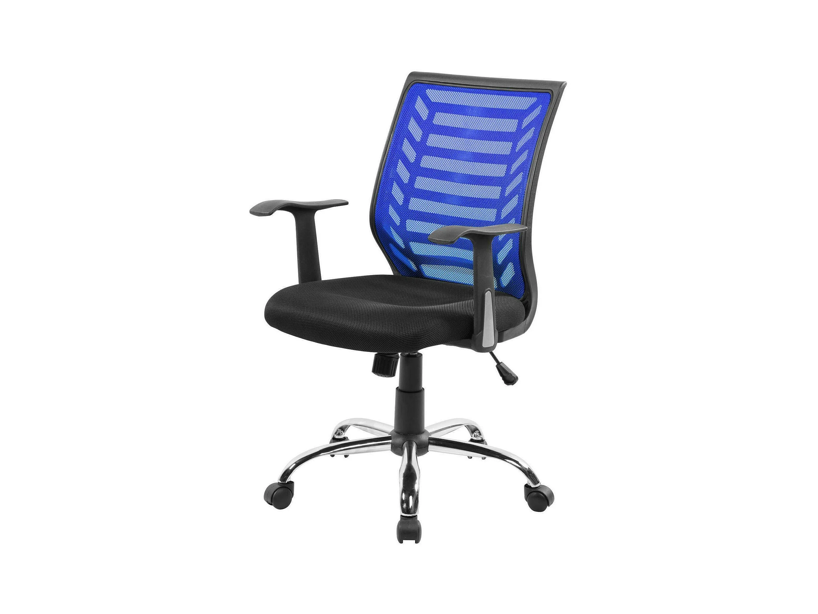 Cadeira de escritório Harbour, Cadeira de trabalho em malha com braços, Assento de escritório ergonômico, 59x60h93/103 cm, Preto e Azul