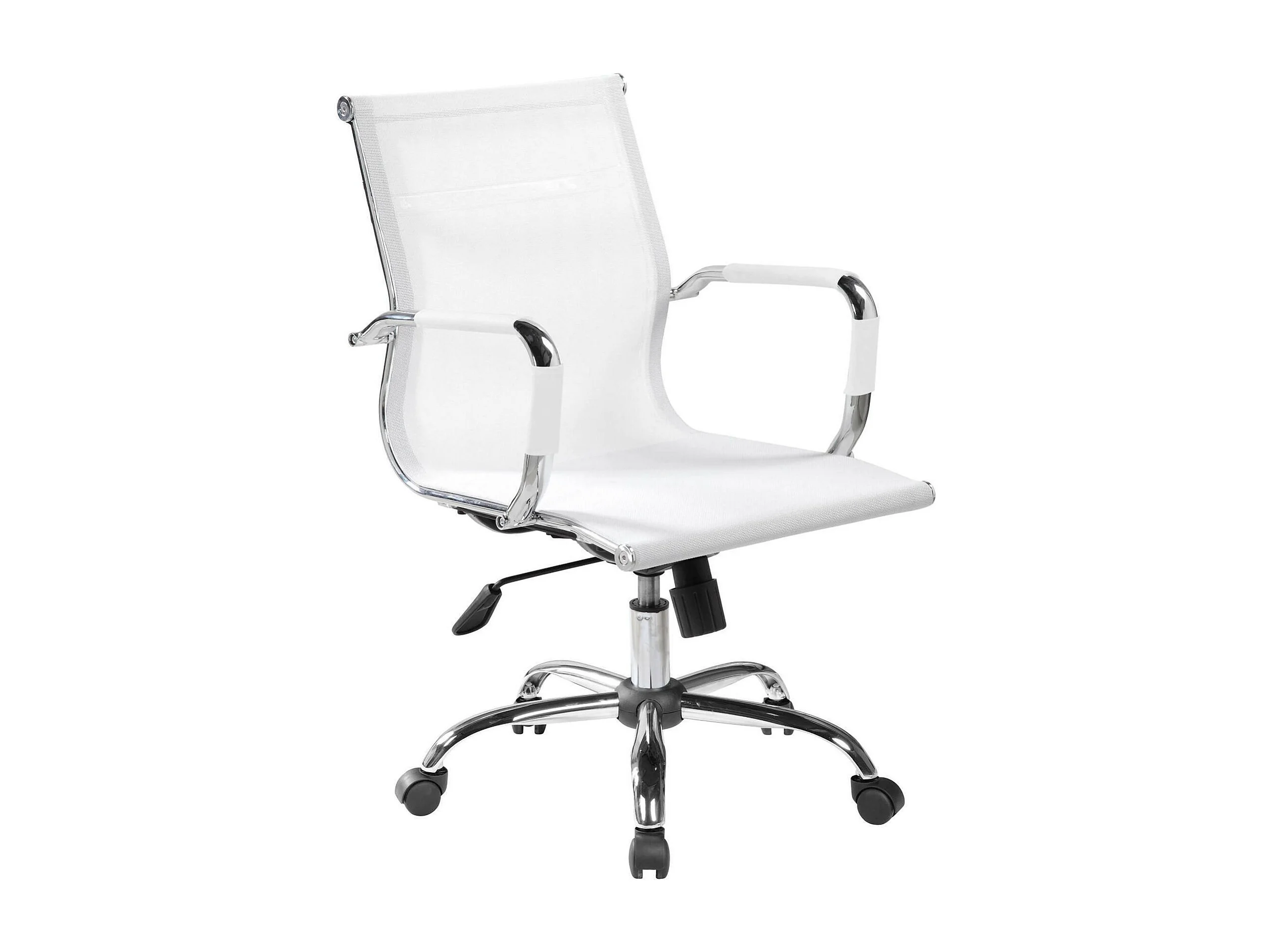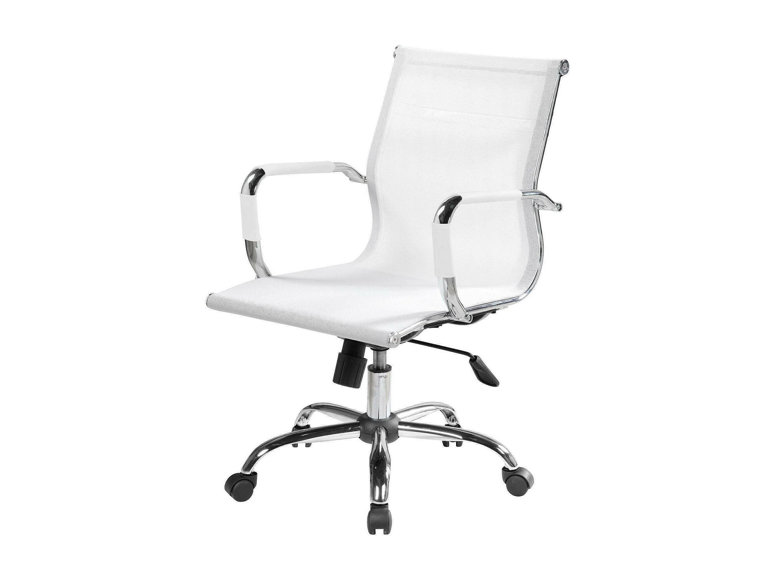 Cadeira de escritório Kanaka, Poltrona executiva com braços, Cadeira de escritório ergonômica, Branca, 62x54h92/102 cm
