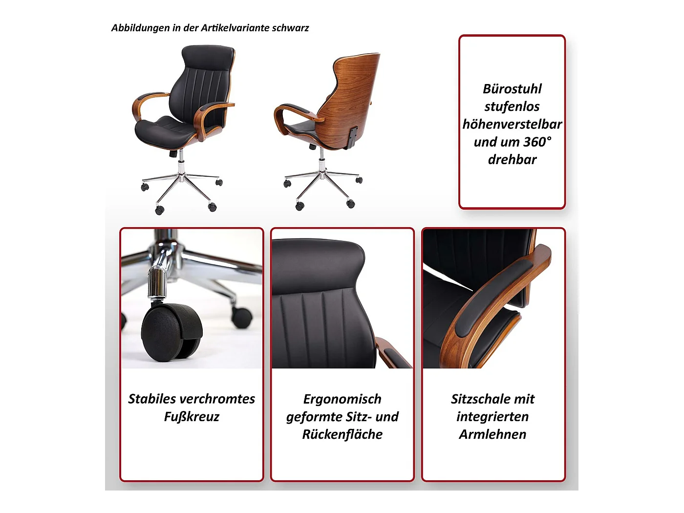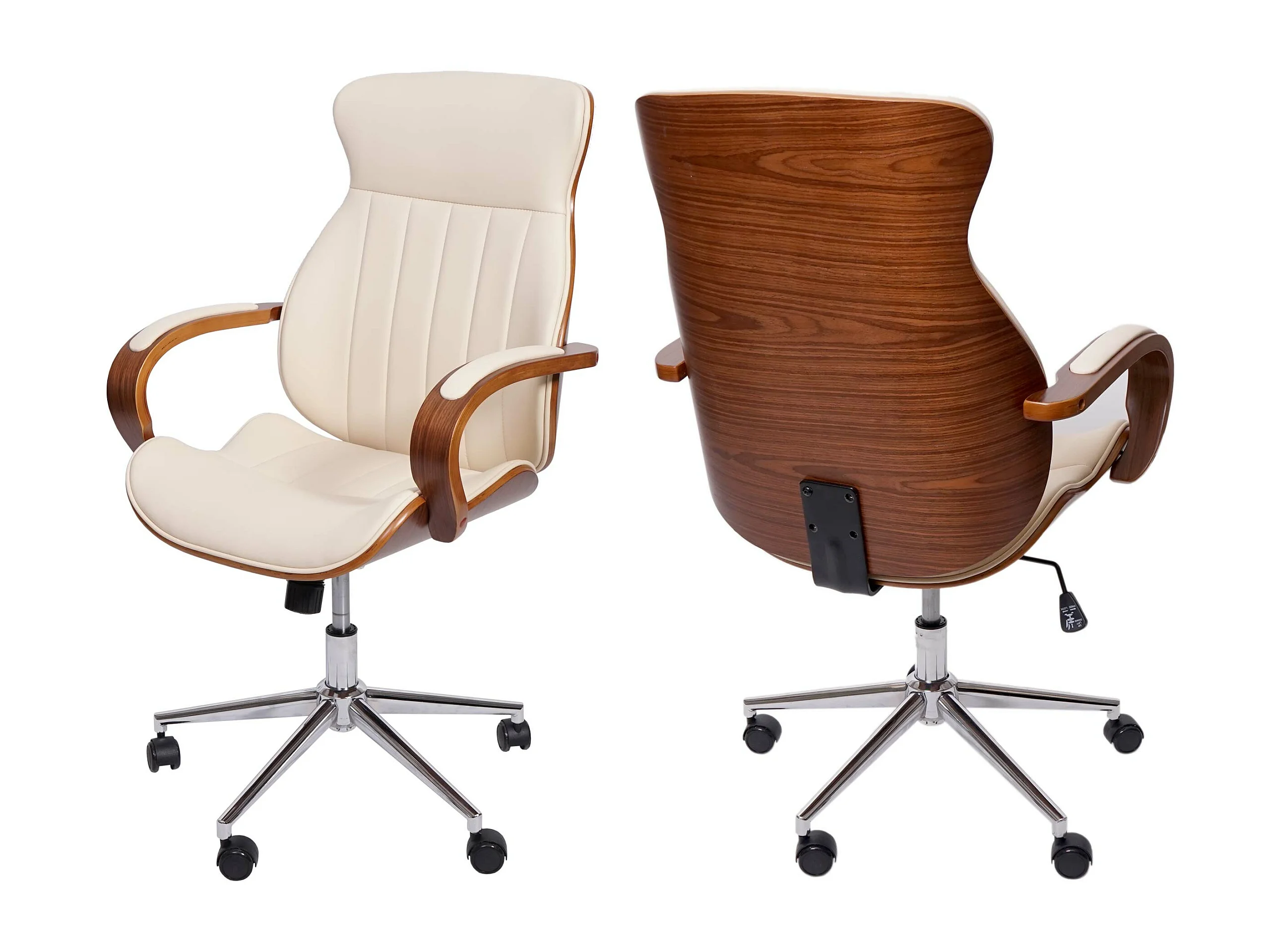 Cadeira escritório giratória madeira curvada/couro artif. creme PT667672