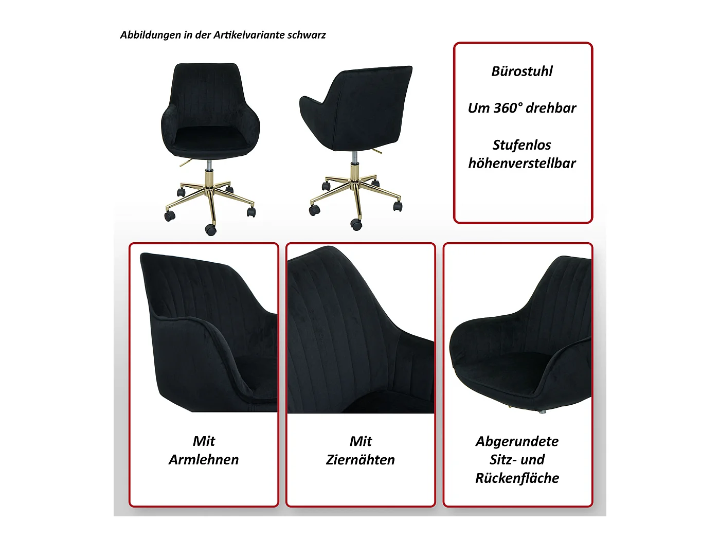 Cadeira de escritório MCW-J62 de veludo com apoio de braços, preto