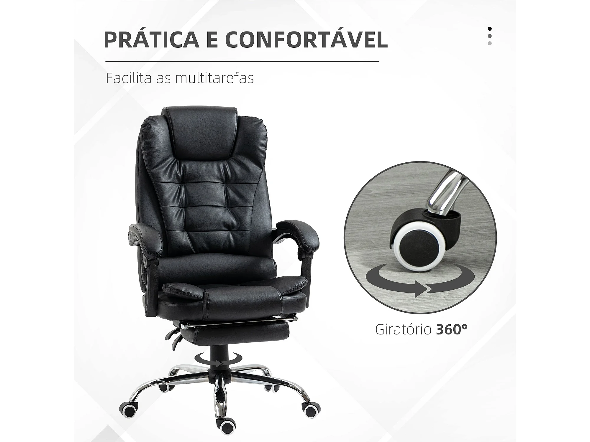 Cadeira de Escritório Reclinável com Apoio para os Pés e Altura Ajustável em Couro Sintético Preto
