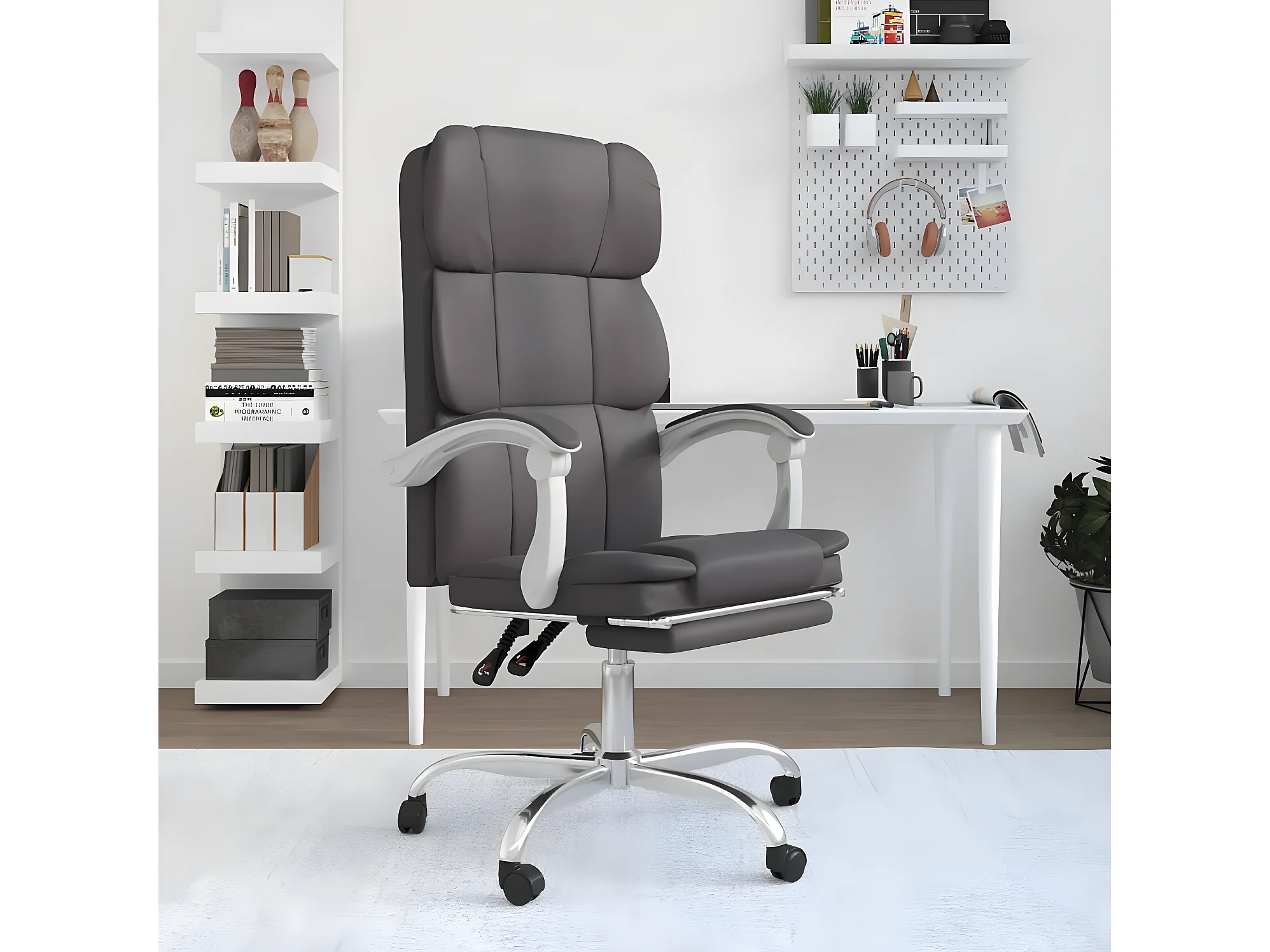 Cadeira de escritório reclinável couro artificial cinzento PT979644