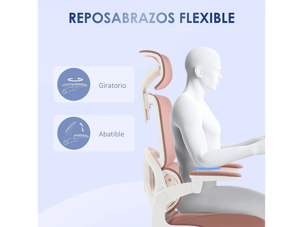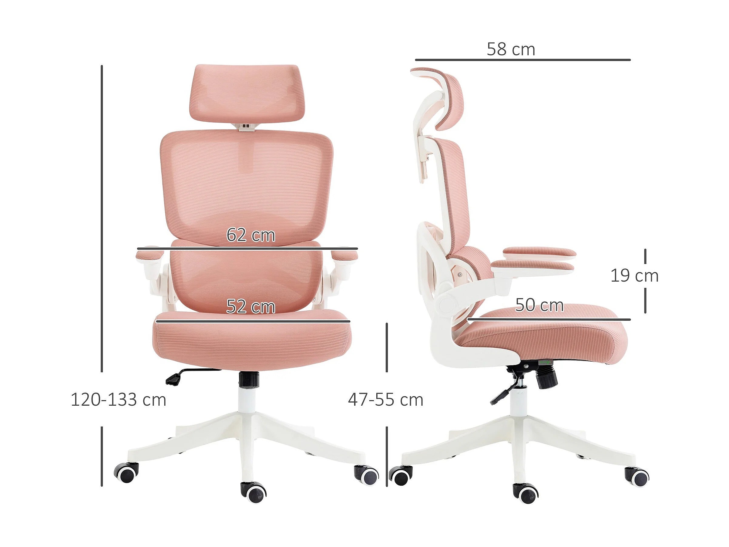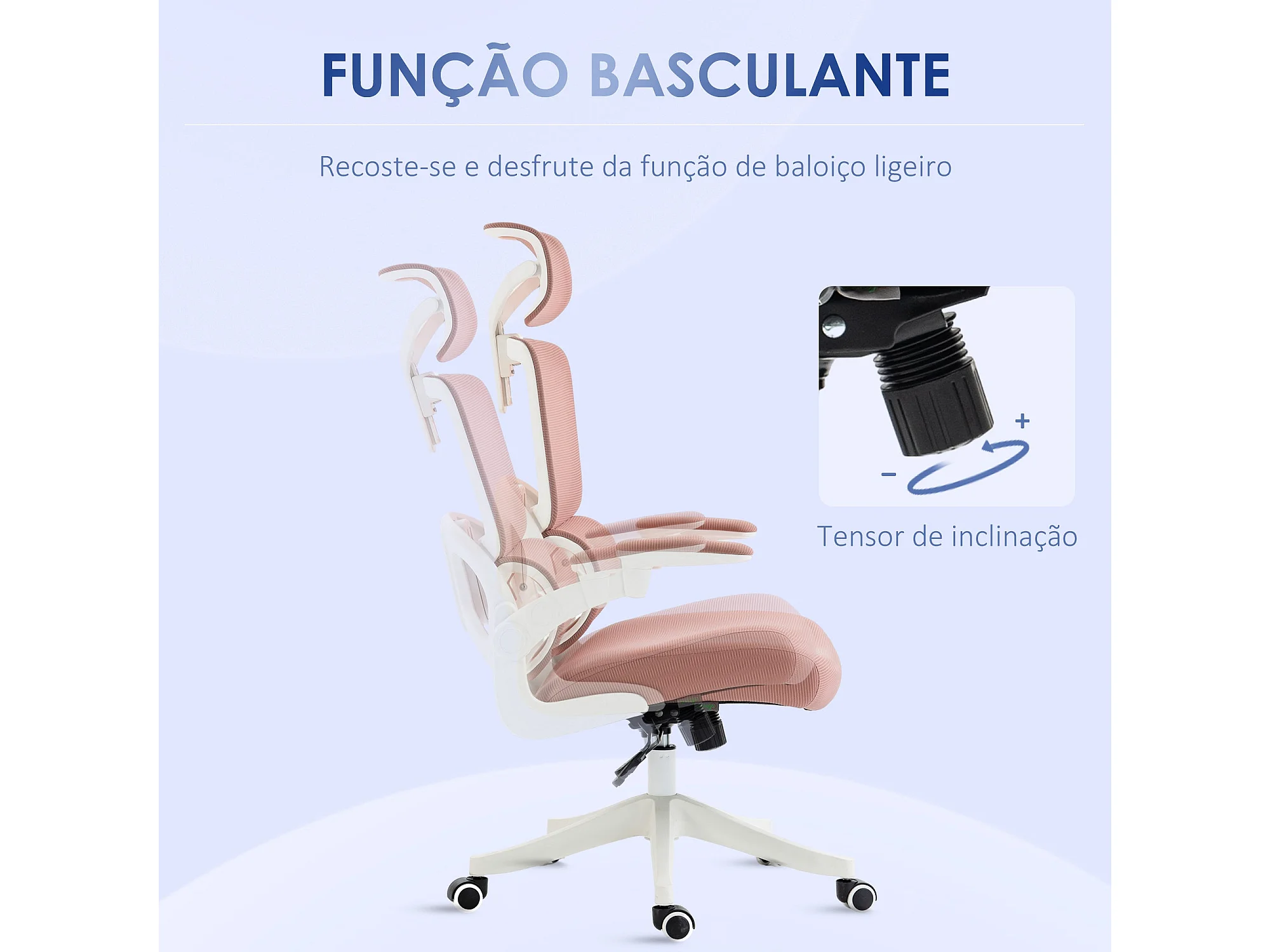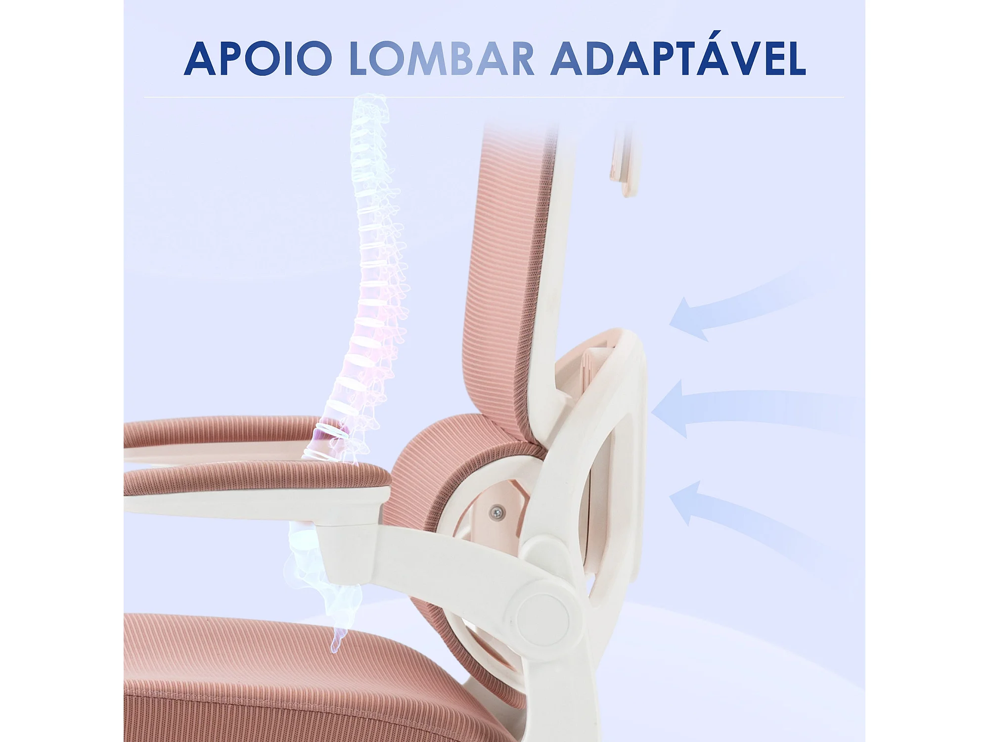 Cadeira de Escritório Ergonómica Vinsetto Giratória Rosa com Apoio Lombar e Altura Ajustável