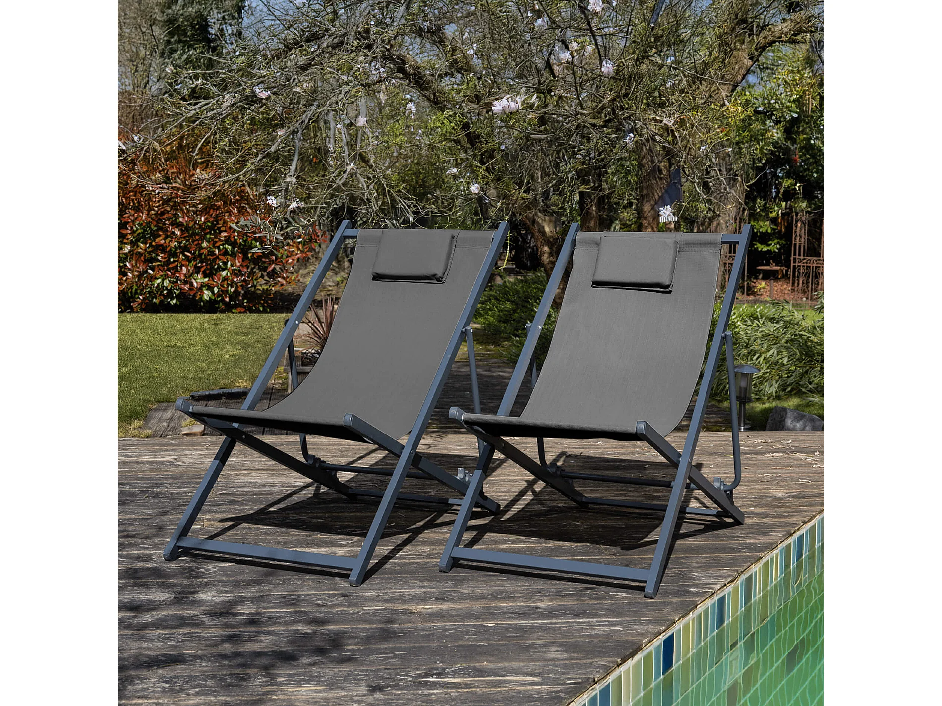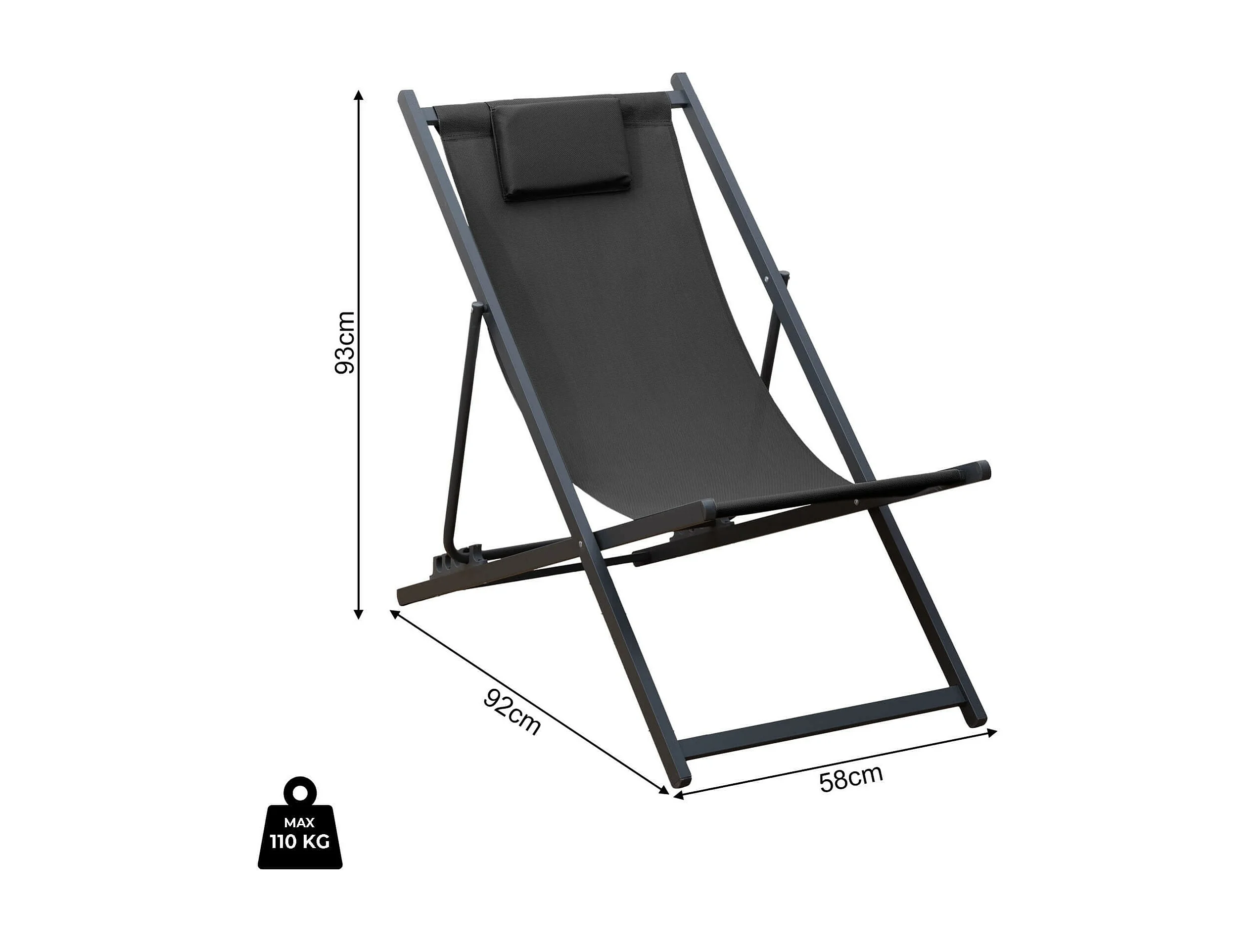 Cadeira de espreguiçadeira dobrável Rebecca Mobili Atis 93x58x92 Poliéster Alumínio Cinza Escuro