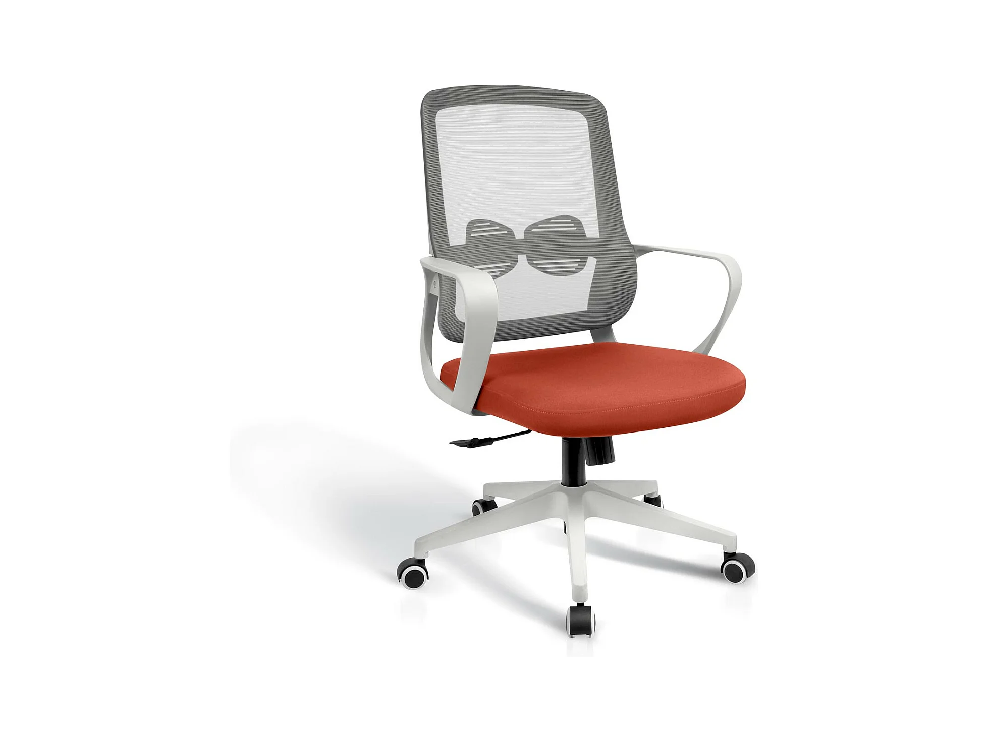 Cadeira de escritório Ddjidj, Cadeira de trabalho em malha com braços, Assento de escritório ergonômico, 56x57h88/100 cm, Preto e Laranja